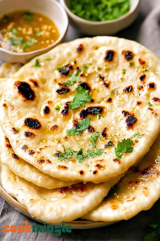- Fresh garlic – Minced garlic gives the naan its bold, signature taste.