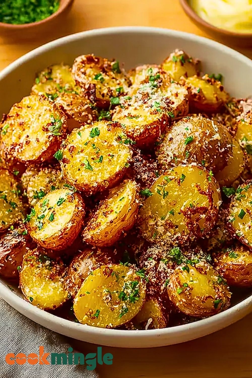 - Parmesan Cheese – Adds a salty, nutty, savory element that crisps up on the edges of each potato.