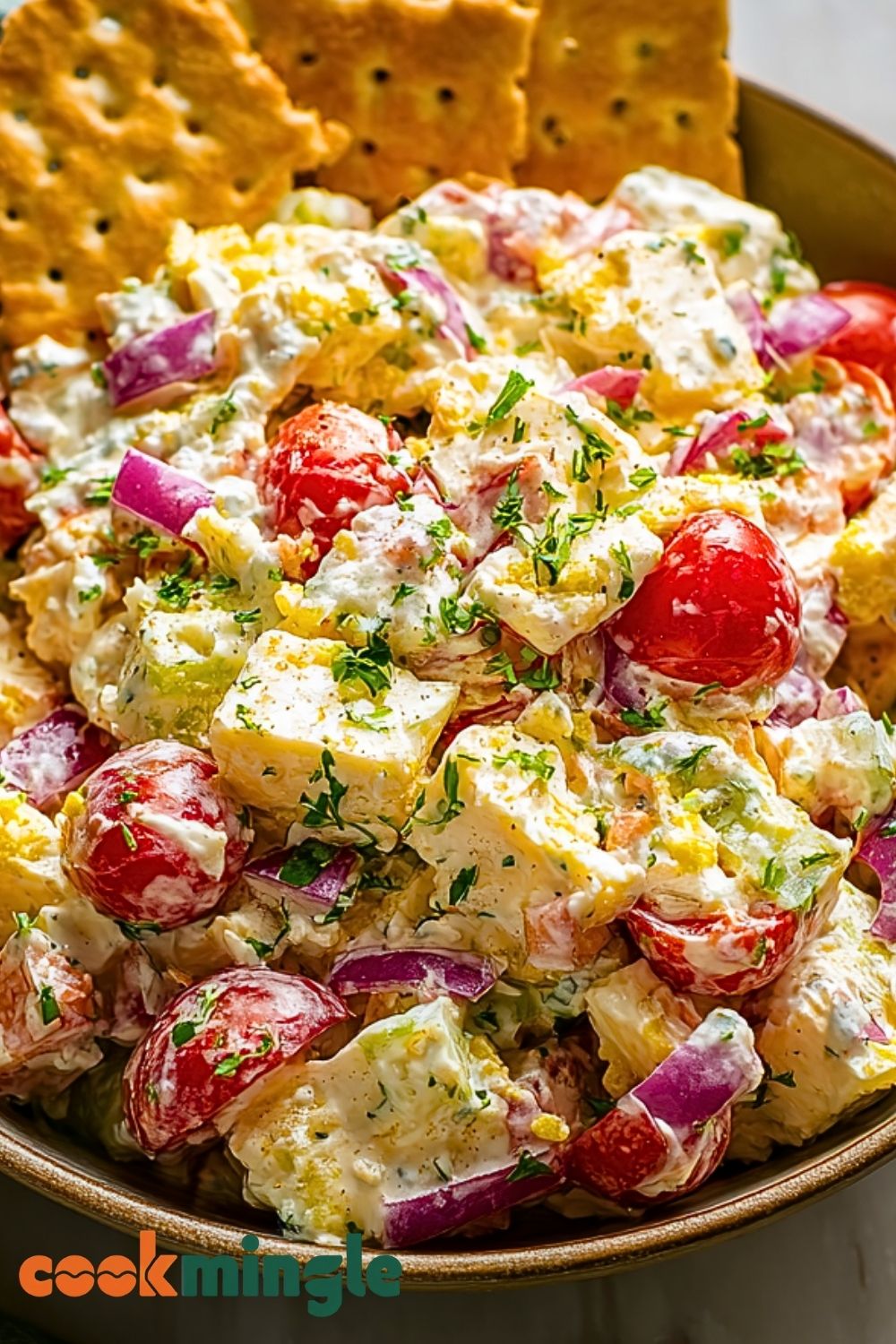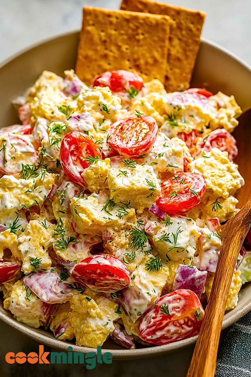 Make Ahead Tip: You can prep the eggs, tomatoes, onions, and dill in advance and store them separately. Crush and mix the crackers in just before serving to preserve texture.