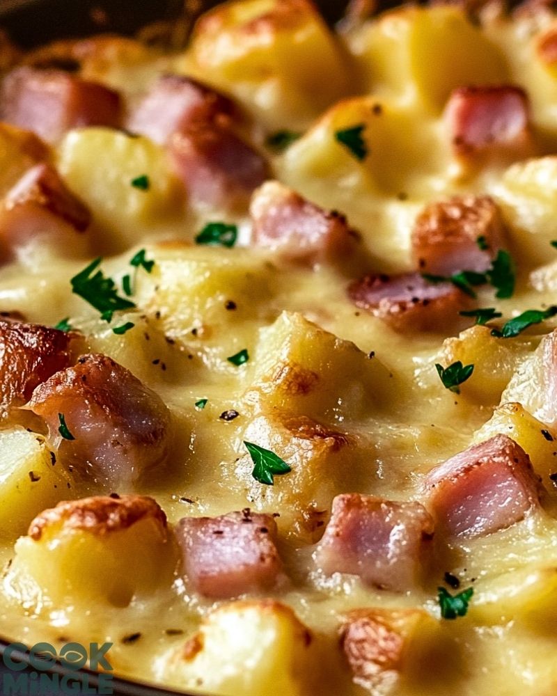 Enjoy this rich and comforting Ham and Potato Casserole fresh out of the oven!