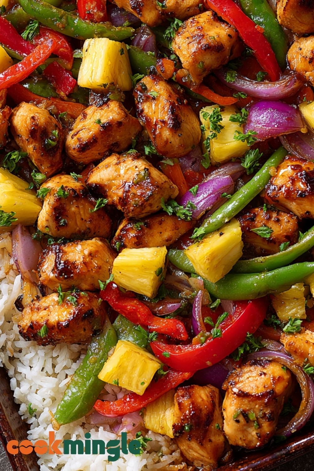 I love how vibrant this dish looks and tastes. The pineapple adds a pop of tropical sweetness, while the roasted veggies bring crunch and depth. It’s also incredibly versatile: you can serve it over rice, in lettuce wraps, or even as a fun taco filling. The texture of roasted chicken caramelized in its marinade, paired with the burst of pineapple juice and charred edges of peppers and onions, is downright addictive.