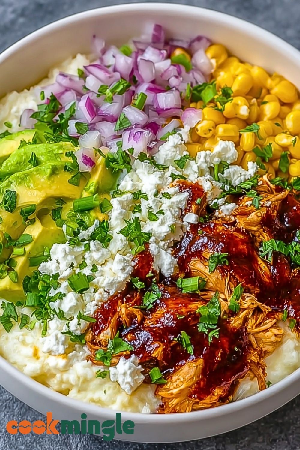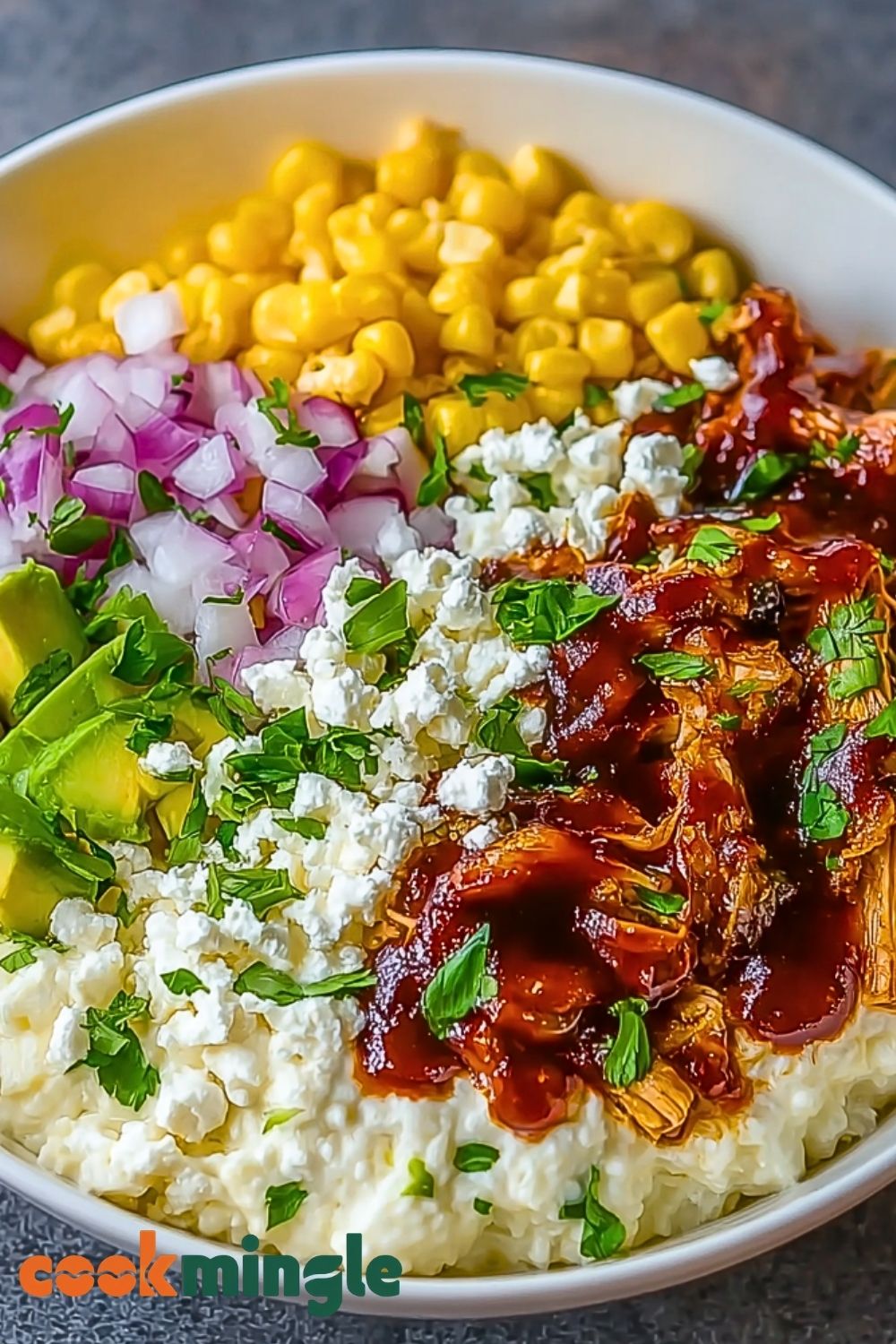 - Shredded Chicken: The base protein of the bowl, perfect for absorbing the BBQ sauce.