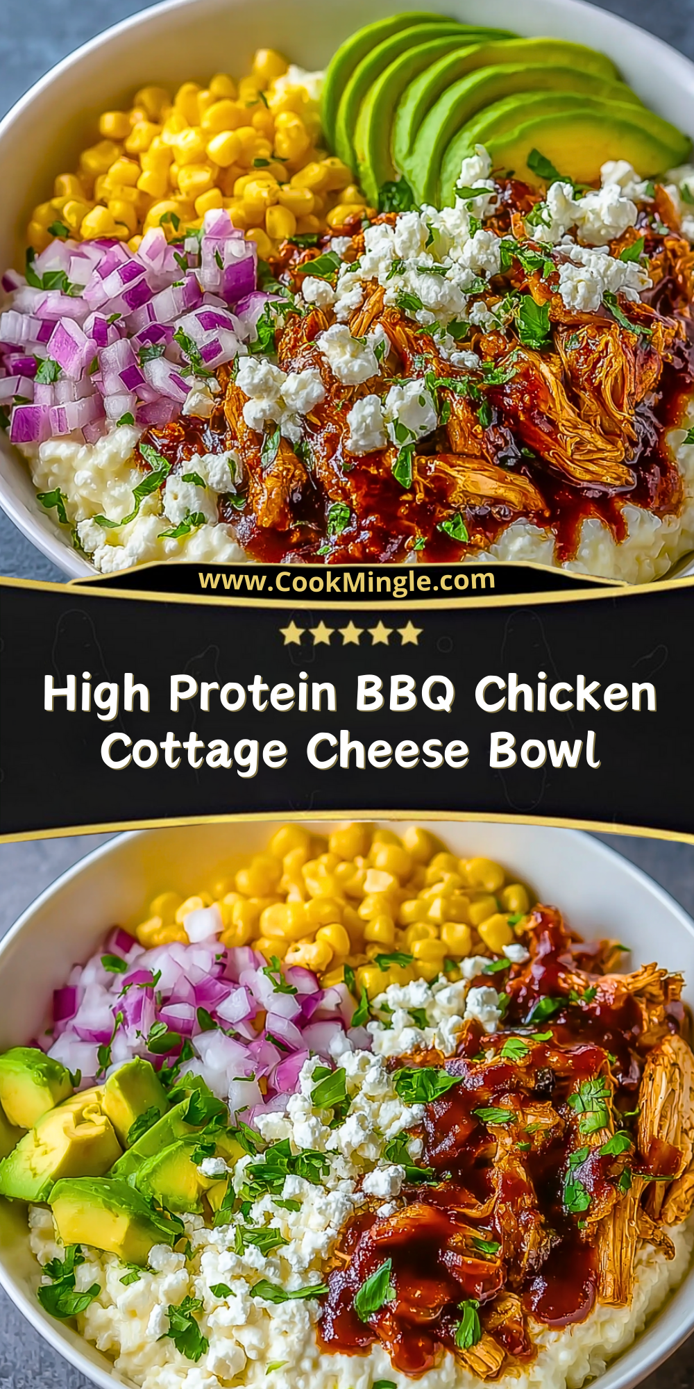 I love recipes that come together quickly but still manage to feel like a complete, satisfying meal—and this High Protein BBQ Chicken Cottage Cheese Bowl hits every mark. It’s hearty, balanced, colorful, and loaded with textures and bold flavors. The combination of smoky BBQ chicken, creamy cottage cheese, sweet corn, tangy red onion, ripe avocado, and a sprinkle of crumbly cheese makes every bite exciting. Plus, it packs a serious protein punch which makes it perfect for lunch or dinner when I need something filling but don’t want to spend hours cooking.