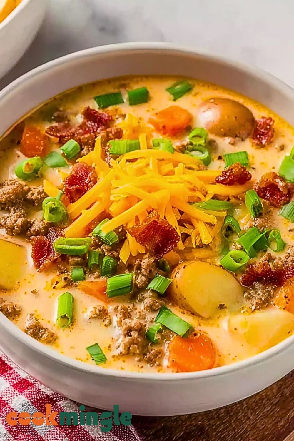 Start by prepping all your ingredients before you turn on the heat—this includes chopping your potatoes, carrots, and onions, and shredding your cheese. Always use freshly shredded cheese rather than pre-shredded for a smoother, creamier melt without clumping. Browning the ground beef properly is key—don’t rush it, let it develop a bit of crust for added flavor. Drain excess grease to keep the soup from becoming oily. When adding the cheese and cream, reduce the heat to low to prevent curdling or separating. Finally, add your toppings just before serving so they remain fresh and crisp.