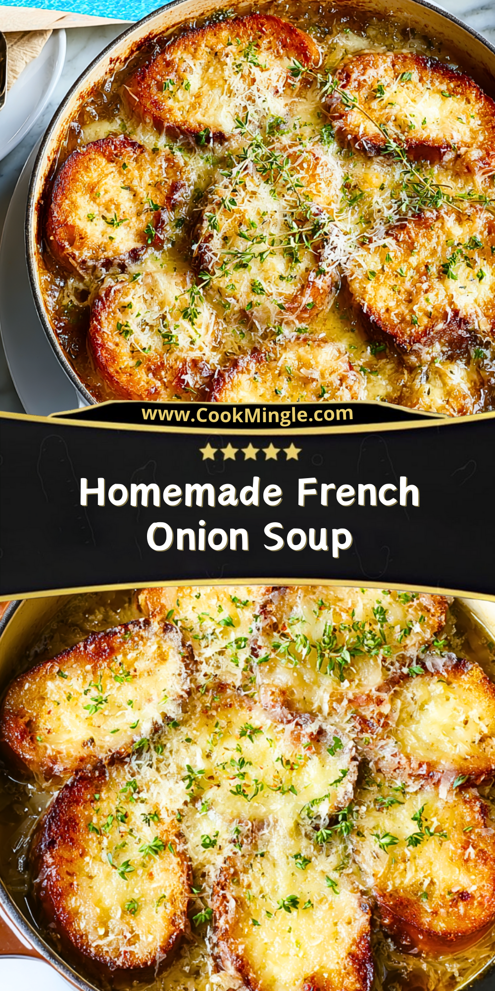 Homemade French Onion Soup is a timeless classic that brings comfort, richness, and just the right amount of indulgence. With its deeply savory broth, sweet onions, crusty bread, and melty cheese, it’s the kind of dish that turns any evening into something special. Whether you’re sharing it with loved ones or savoring it solo, this soup will never disappoint.