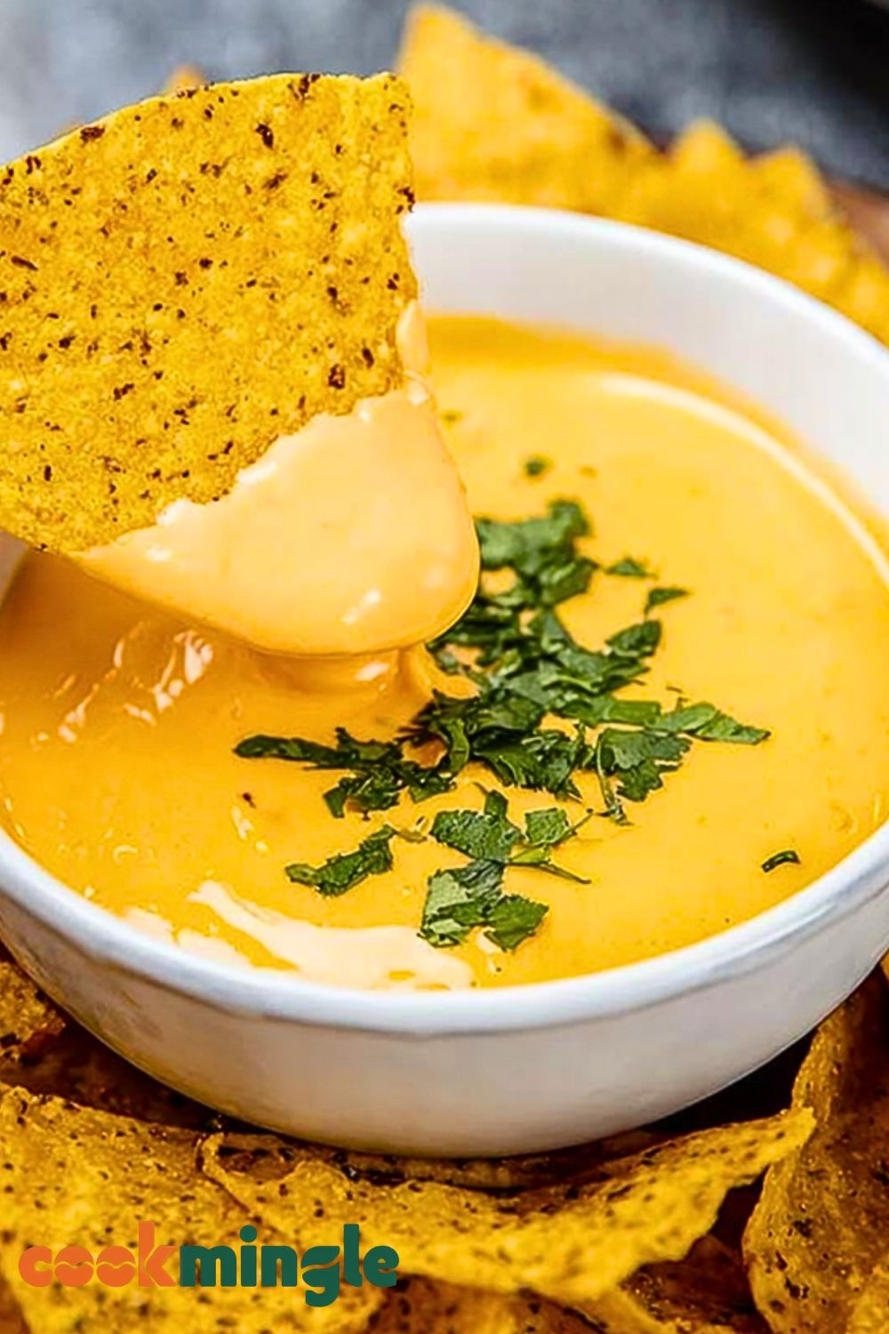 Let the cheese dip cool completely before transferring it into an airtight container. Store in the refrigerator for up to 4 days. To reheat, place in a saucepan over low heat with a splash of milk, stirring frequently until smooth. Alternatively, microwave in 30-second bursts, stirring in between. Avoid freezing, as the texture may become grainy upon thawing.