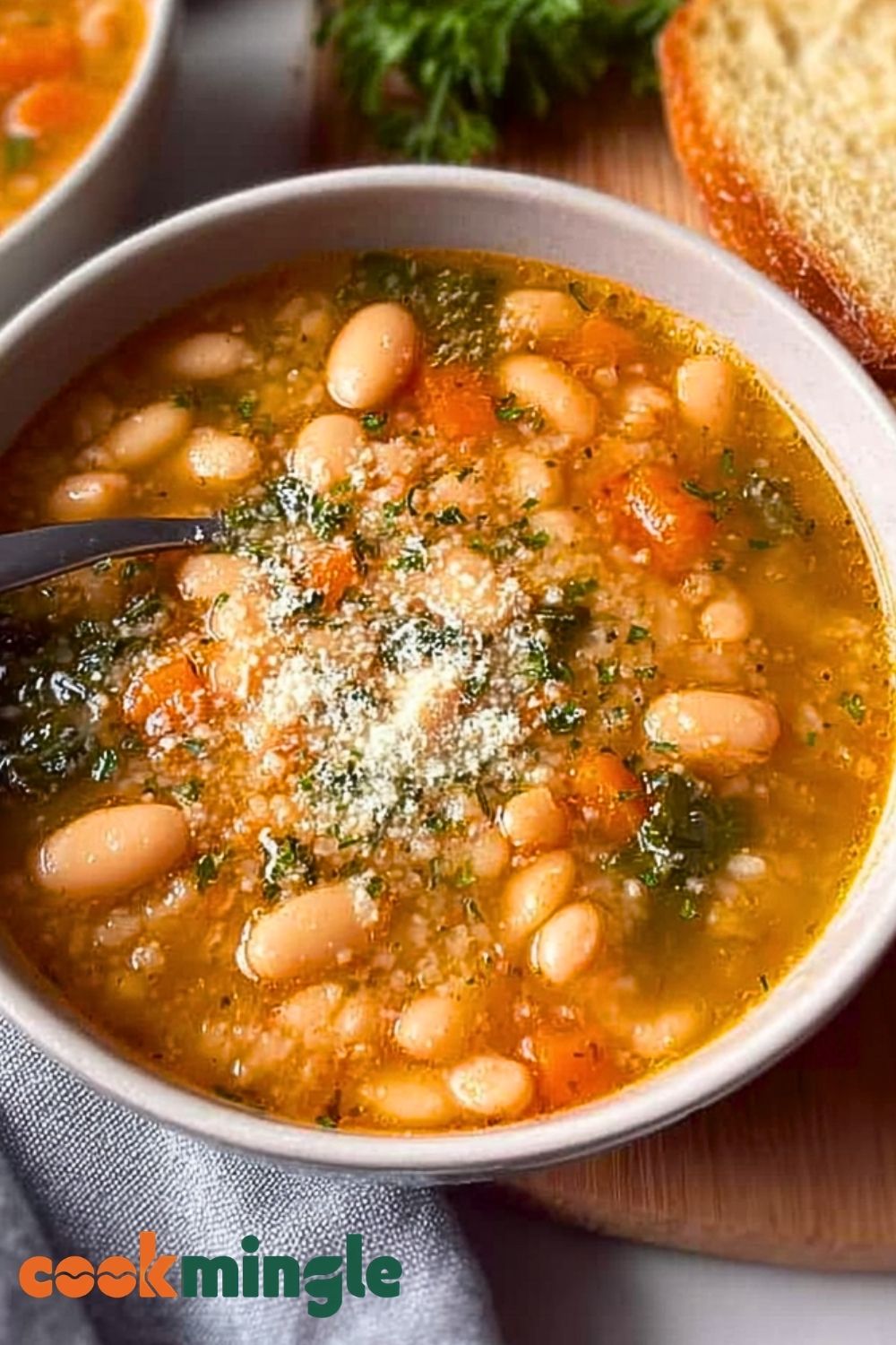 Ladle the hot soup into bowls and top with freshly grated Parmesan cheese and chopped parsley. Serve with warm crusty bread for a complete and satisfying meal.