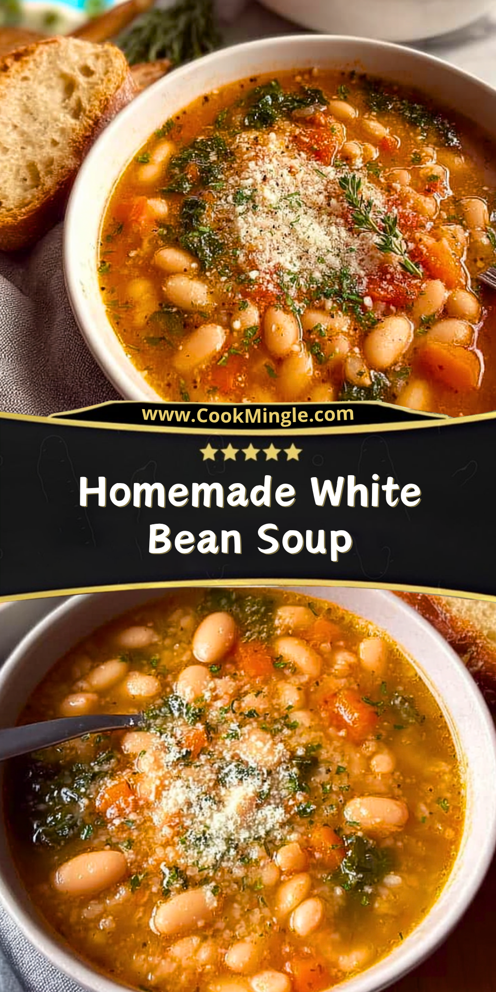 Allow the homemade white bean soup to cool completely before transferring it to an airtight container. It can be stored in the refrigerator for up to 4–5 days. For longer storage, freeze the soup in portion-sized containers for up to 3 months. When reheating, add a splash of water or broth to loosen the consistency, as the beans tend to thicken the soup over time. Reheat gently on the stovetop or in the microwave, stirring occasionally for even warming.