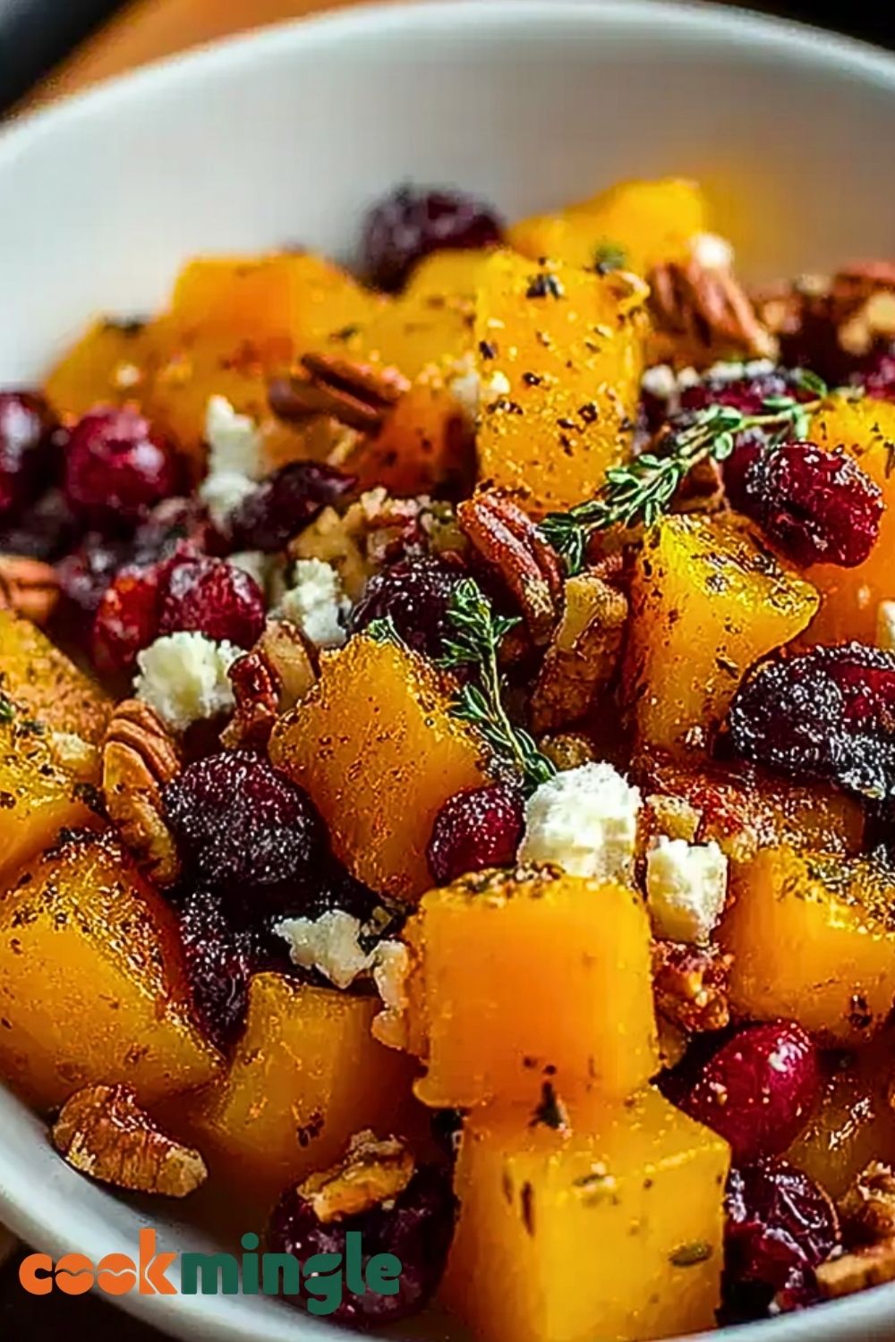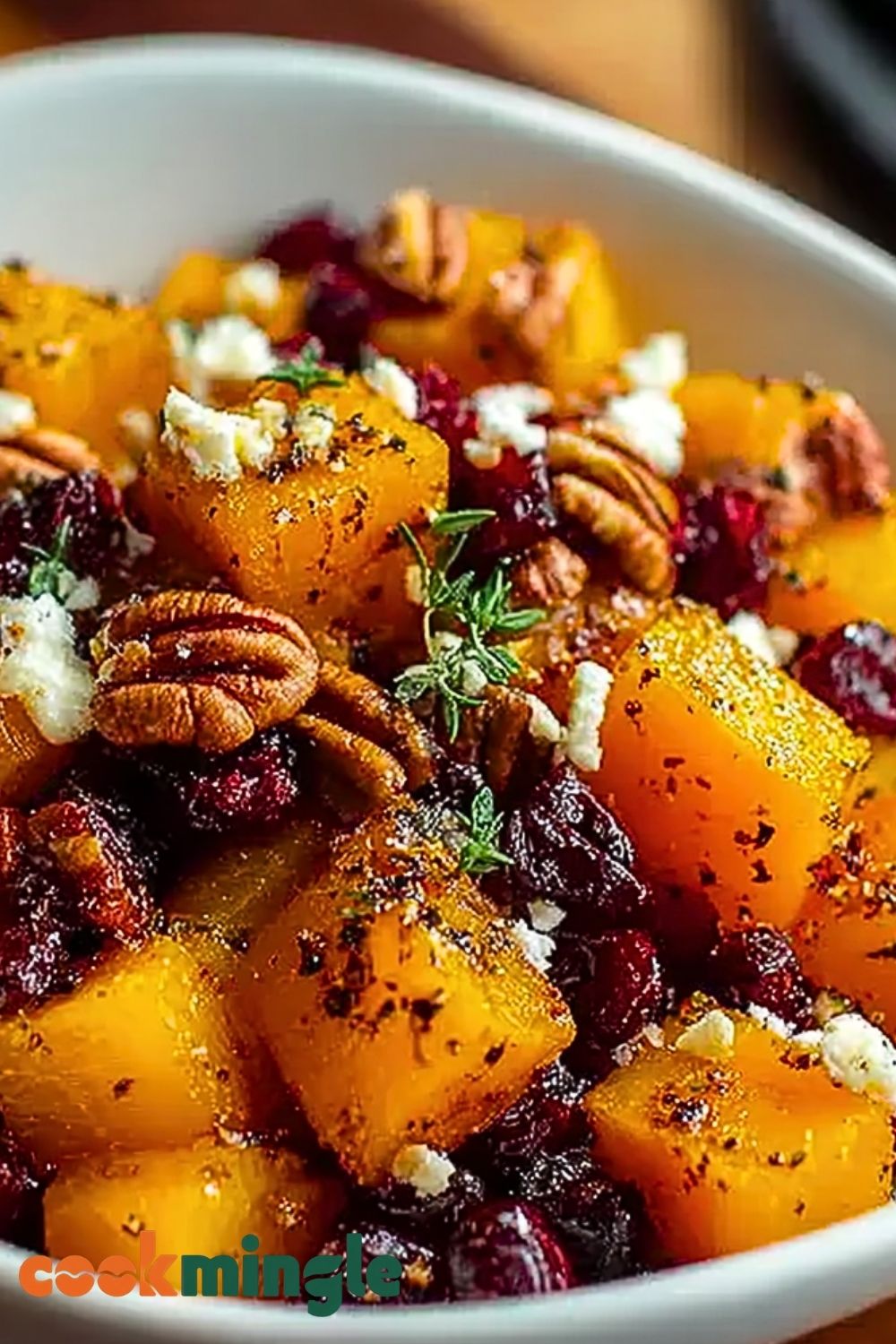 Honey Roasted Butternut Squash with Cranberries, Pecans, and Feta