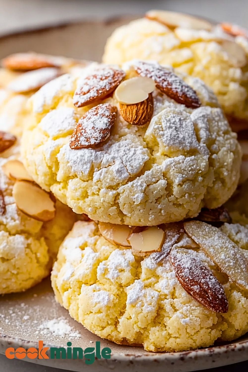 Make sure your butter and ricotta are at room temperature before starting. This helps them blend more smoothly and creates a better texture. Don’t overmix once the flour is added—you want tender cookies, not tough ones. Using a cookie scoop keeps the sizing uniform, which leads to even baking. And for that picturesque look, gently press a few almond slices on top of each dough ball before baking, then finish with powdered sugar once they’re completely cooled.