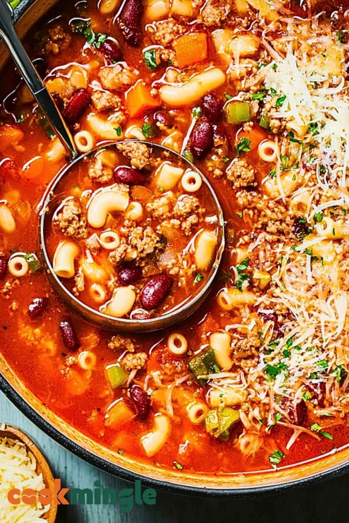 A steaming bowl of Italian Pasta Fagioli is the ultimate comfort food—hearty, flavorful, and packed with protein and vegetables. This classic Italian soup combines tender ditalini pasta, rich tomato broth, savory ground beef, and a medley of beans to create a dish that’s satisfying enough to be a full meal. Perfect for those seeking easy dinner ideas, quick lunch preps, or cozy food ideas, this easy recipe is also ideal for meal planning. Whether you’re hunting for dinner ideas or need a healthy snack that can double as a meal, this quick and flavorful option belongs in your rotation of go-to dishes.