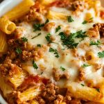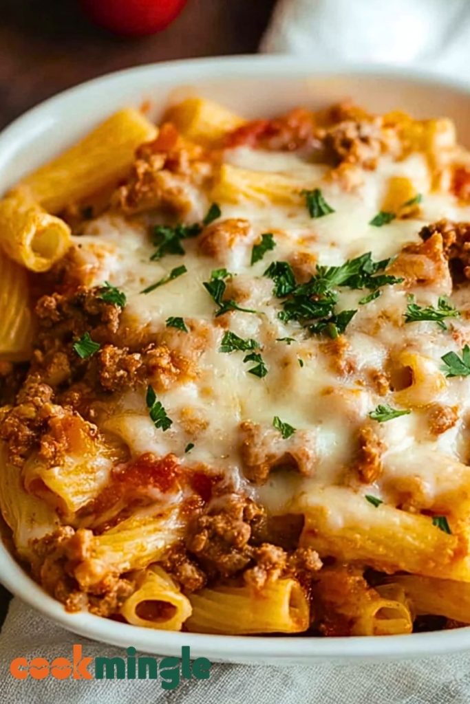 What makes this dish shine is the perfect harmony of texture and flavor. The rigatoni noodles hold onto the sauce beautifully, creating pockets of savory meat, sweet tomato, and luscious cheese in every forkful. Once baked, the top turns golden and bubbly, delivering that irresistible slightly crispy cheese crust while the center stays saucy and comforting. It’s a crowd-pleaser that doubles beautifully and even freezes well, making it a must-have in your recipe rotation.