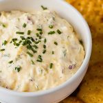 This dip brings restaurant-level flavor into your kitchen without the stress. It’s a no-cook recipe, which means you can prepare it in advance and store it until party time. The combination of Jarlsberg cheese with creamy mayo, red onions, and fresh chives hits every savory note. It’s cheesy, slightly sweet, creamy, and has just the right amount of crunch from the onions.