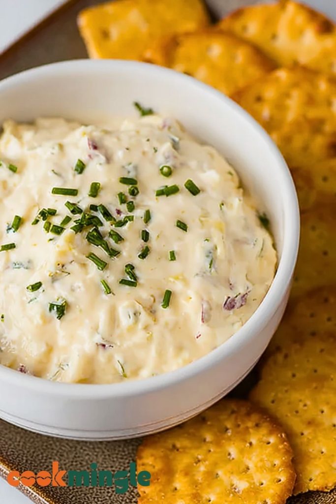Preparation is incredibly fast, which is one of the best things about this dip. Grating the cheese, chopping the onions and chives, and mixing everything together takes just about 10 minutes. If you’re in a pinch and need a last-minute appetizer, this dip has you covered.