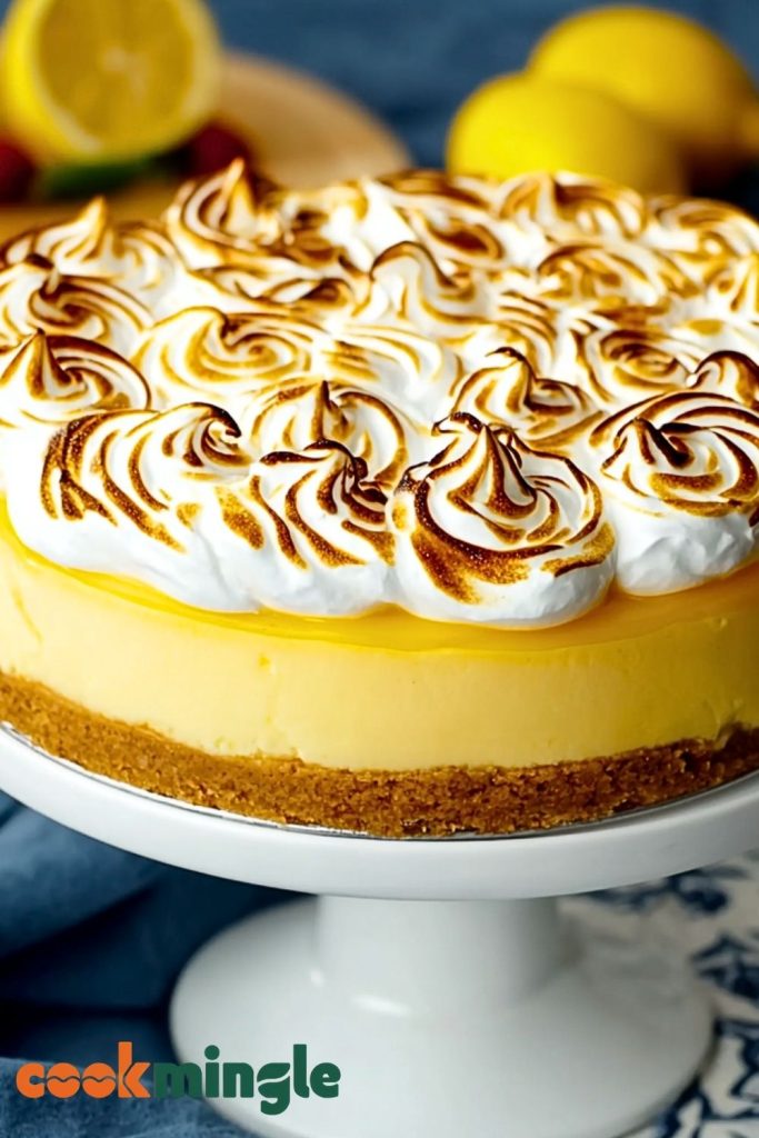 Keywords: lemon cheesecake, lemon meringue dessert, easy cheesecake recipe, brunch dessert, citrus dessert
