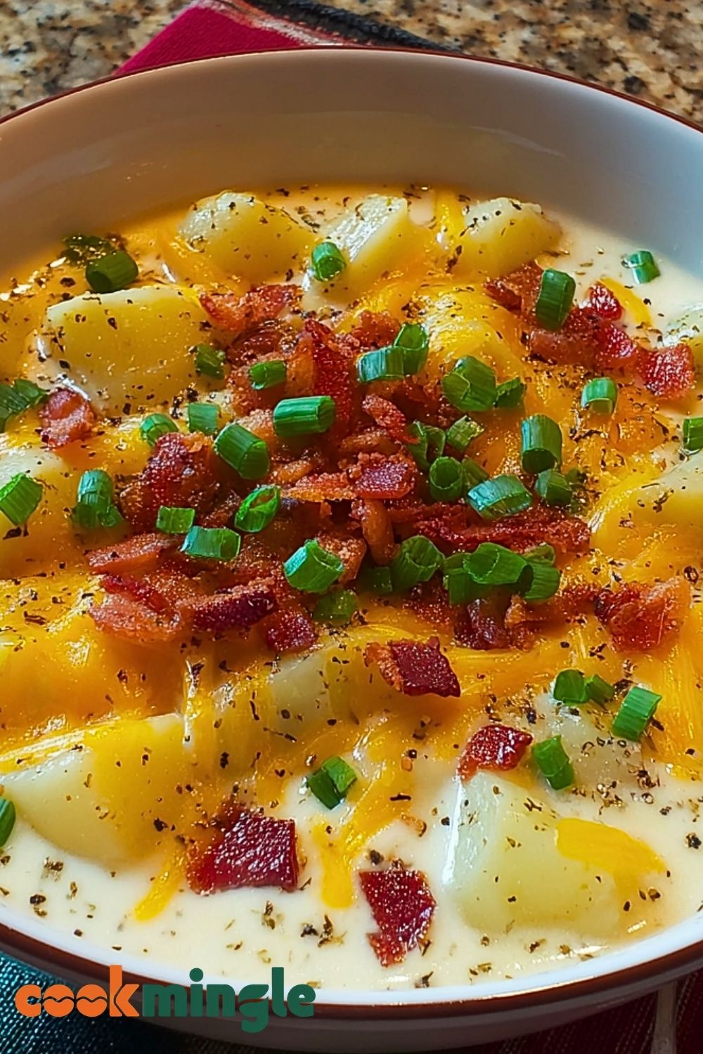 For the best results, choose starchy potatoes like Russet or Yukon Gold, as they break down slightly and help create a naturally creamy consistency. Cut the potatoes into uniform pieces so they cook evenly, and don’t rush the simmering process—this allows the flavors to fully develop. When adding cheese, make sure to lower the heat to avoid curdling and stir gradually for a silky finish. Cooking the bacon separately until crisp and adding it just before serving keeps it from becoming soggy, preserving that satisfying crunch.