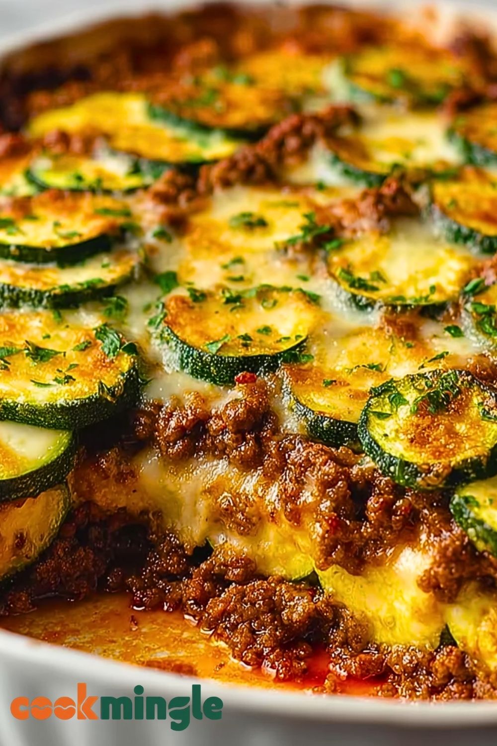 Lightly grease a 9×13-inch baking dish. Spread half of the meat mixture at the bottom. Add a layer of zucchini slices, slightly overlapping. Spoon half of the ricotta mixture on top and spread gently. Repeat the layers: remaining meat, zucchini slices, then the rest of the ricotta mixture.