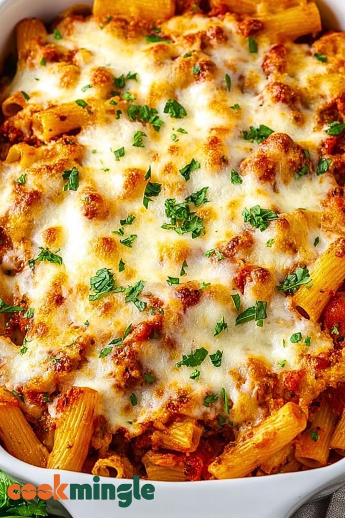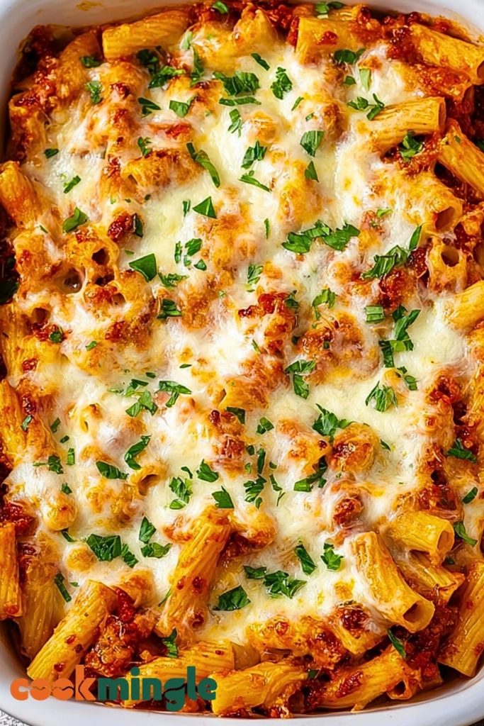 - Ziti or Rigatoni Pasta – The base of the dish. These sturdy, tube-shaped noodles hold up well to baking and soak in the sauce.