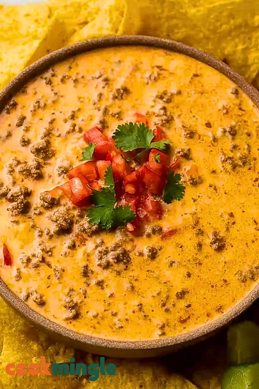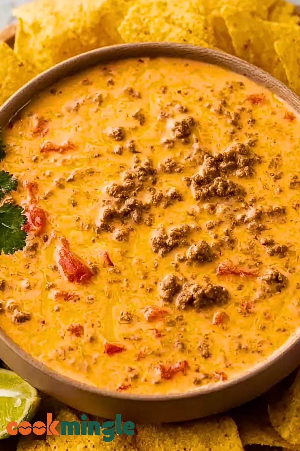 Keep the dip warm in the Crockpot on the “keep warm” setting. Garnish with freshly chopped cilantro or a squeeze of lime juice if desired. Serve with tortilla chips, pretzels, or veggies for dipping. Enjoy every gooey, savory bite!