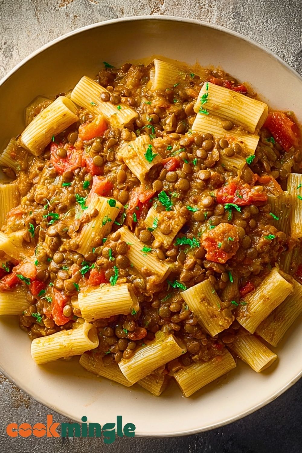 8. Combine pasta with lentil mixture and let sit 2–3 minutes before serving.