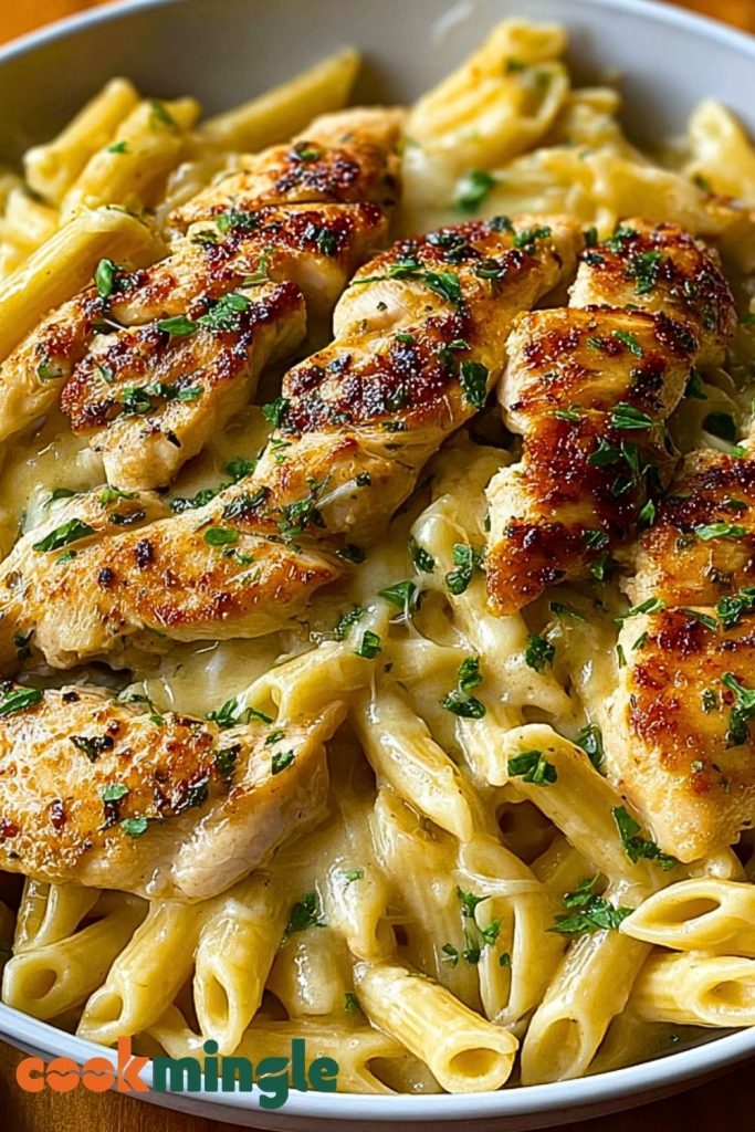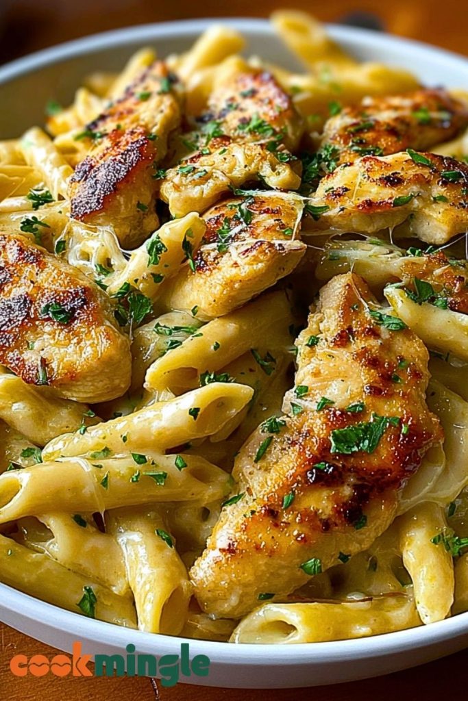 Keywords: easy dinner, chicken pasta, creamy garlic pasta, one pan meals, food ideas