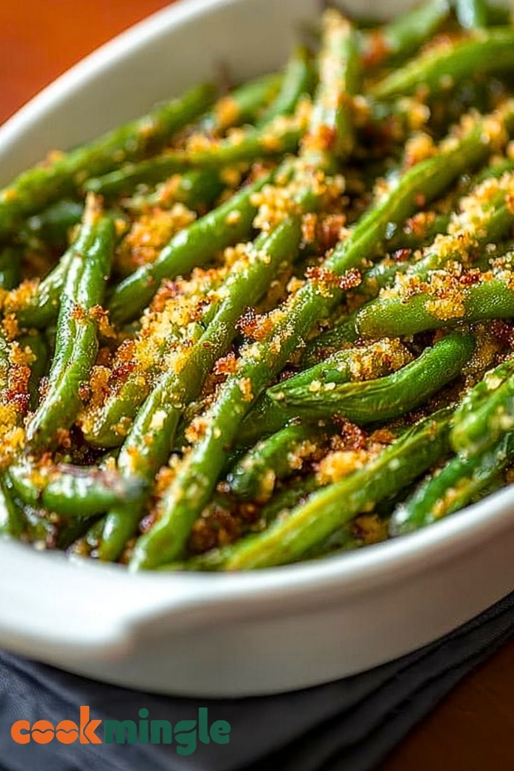 If you’re out of fresh green beans, frozen will do in a pinch — just thaw and pat them dry thoroughly before roasting. Want to make it dairy-free? Swap the parmesan for a vegan alternative or nutritional yeast. Breadcrumbs can be substituted with crushed pork rinds for a low-carb version, or panko for extra crunch. You can also play with flavor by adding red pepper flakes or a dash of lemon zest before serving.