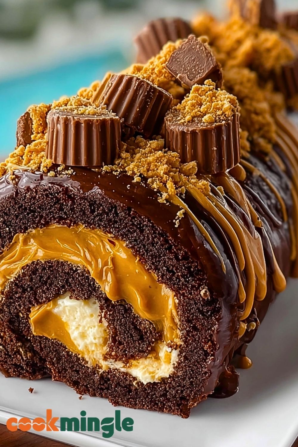 Peanut Butter Cup Chocolate Roll Cake