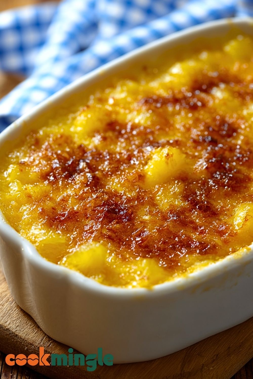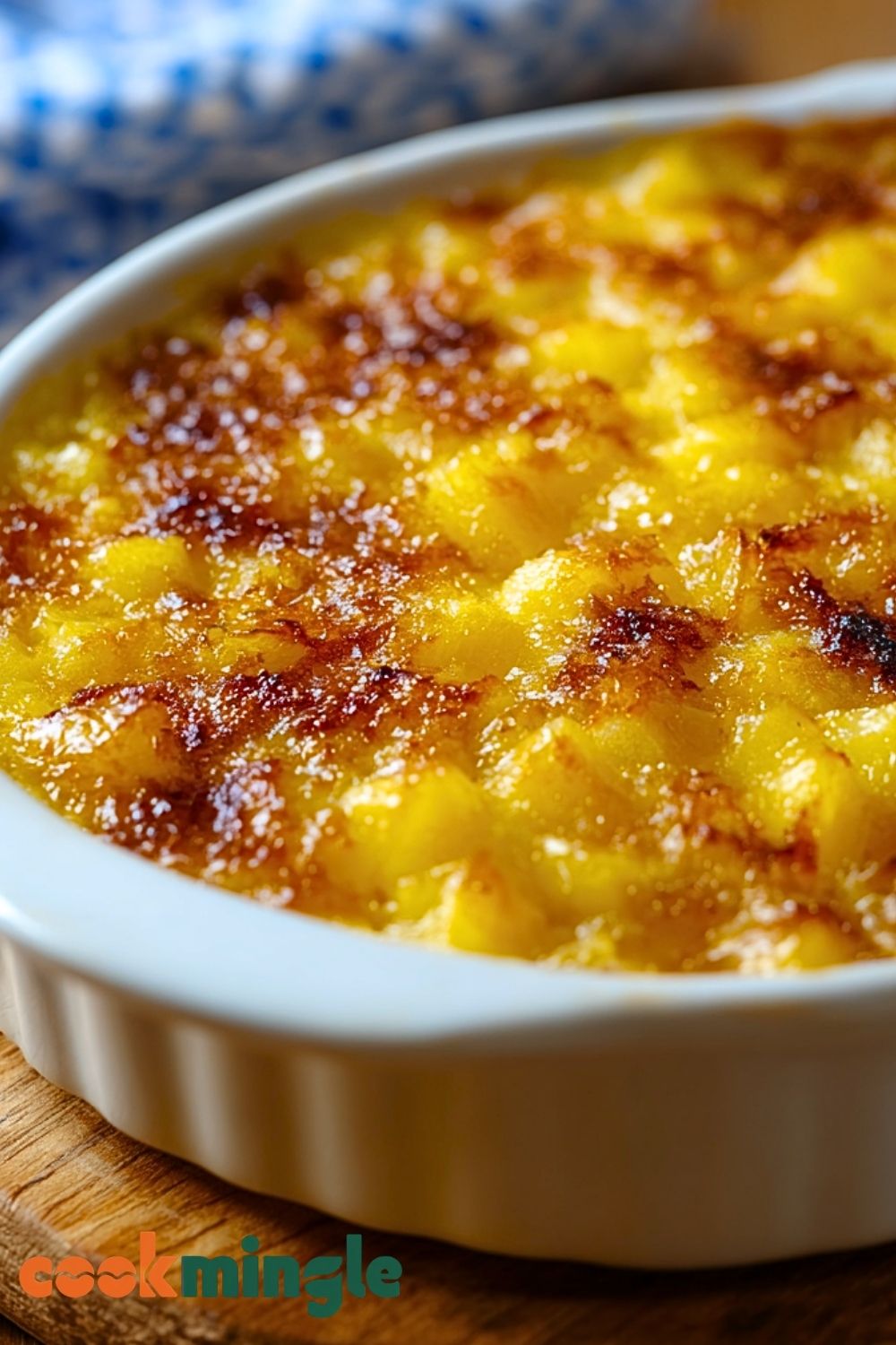 Use pineapple in juice—not syrup—for better control of sweetness. Make sure to drain it lightly but don’t squeeze it dry; a bit of juice enhances moisture. Beat the eggs until fluffy before combining them with sugar and pineapple, and always mix until just combined to avoid a dense texture. If you’re baking ahead, serve it warm for the best experience—it reheats beautifully. A light sprinkle of brown sugar on top before baking can add extra caramelization.