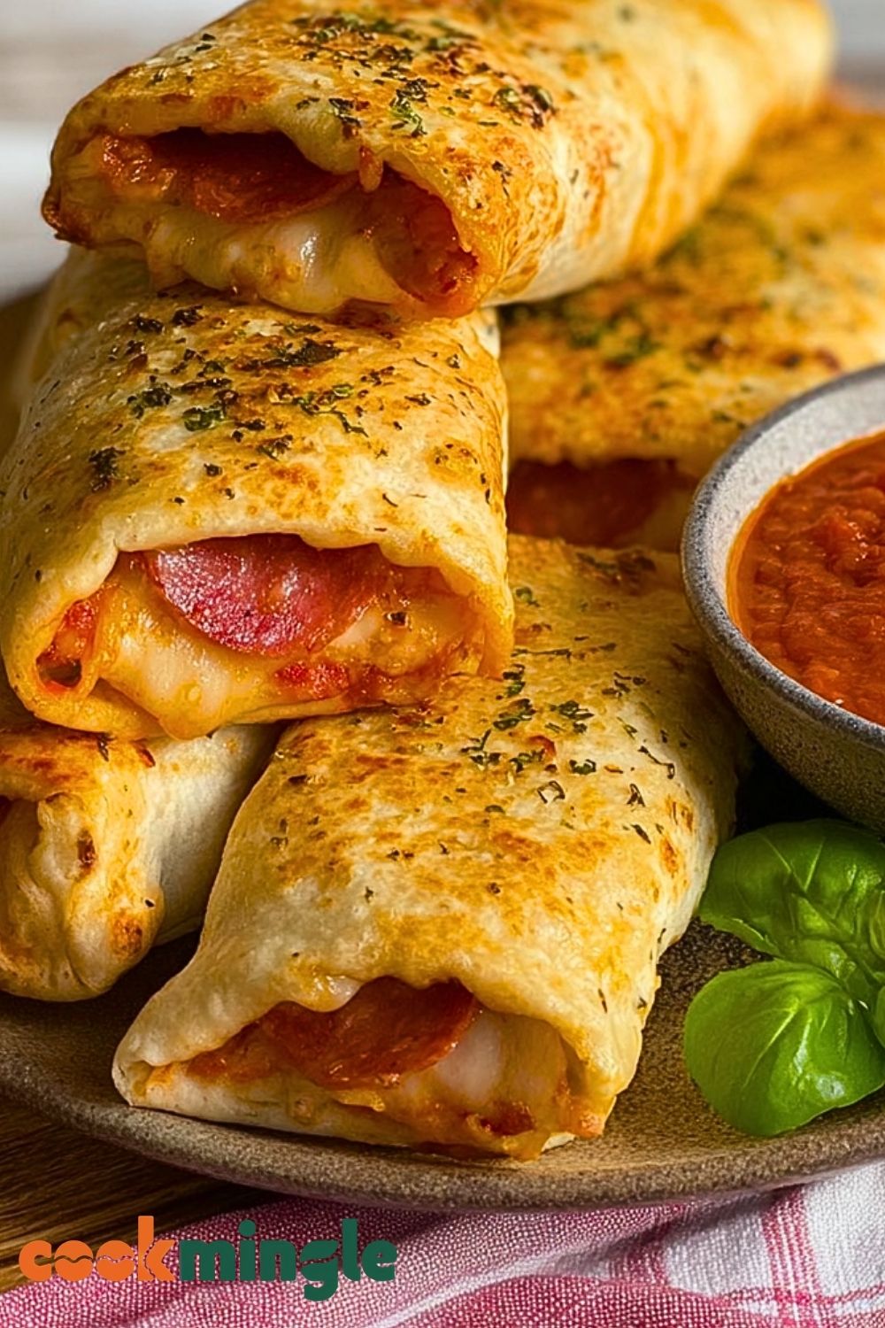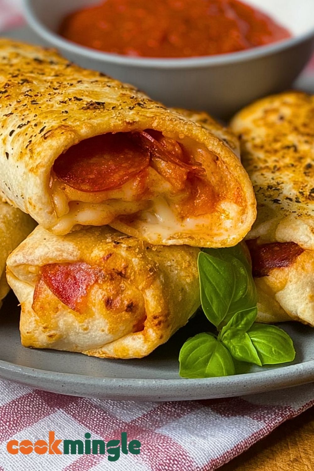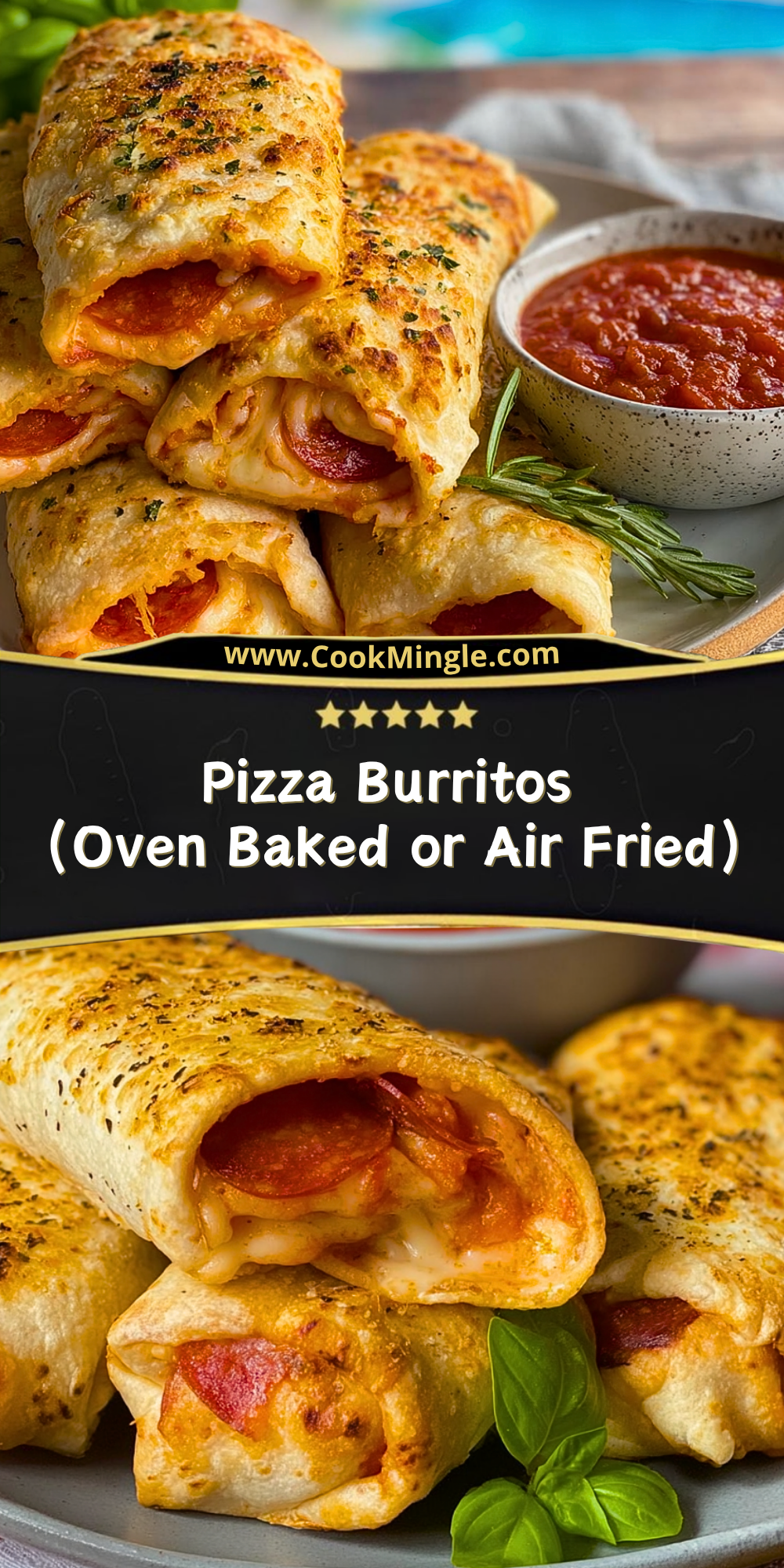 Let the burritos cool for a couple of minutes after cooking. Slice in half if desired, garnish with fresh basil, and serve with extra marinara sauce on the side for dipping. Perfect as a main dish, snack, or party appetizer!