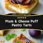 Plum & Cheese Puff Pastry Tarts are the kind of treat that makes you feel like a pastry chef in your own kitchen—without the stress. The flaky crust, creamy filling, and fresh fruit topping come together in a way that’s balanced, beautiful, and seriously satisfying. Whether you’re hosting brunch, bringing a dessert to a potluck, or simply treating yourself, this recipe delivers elegance and flavor in every bite.