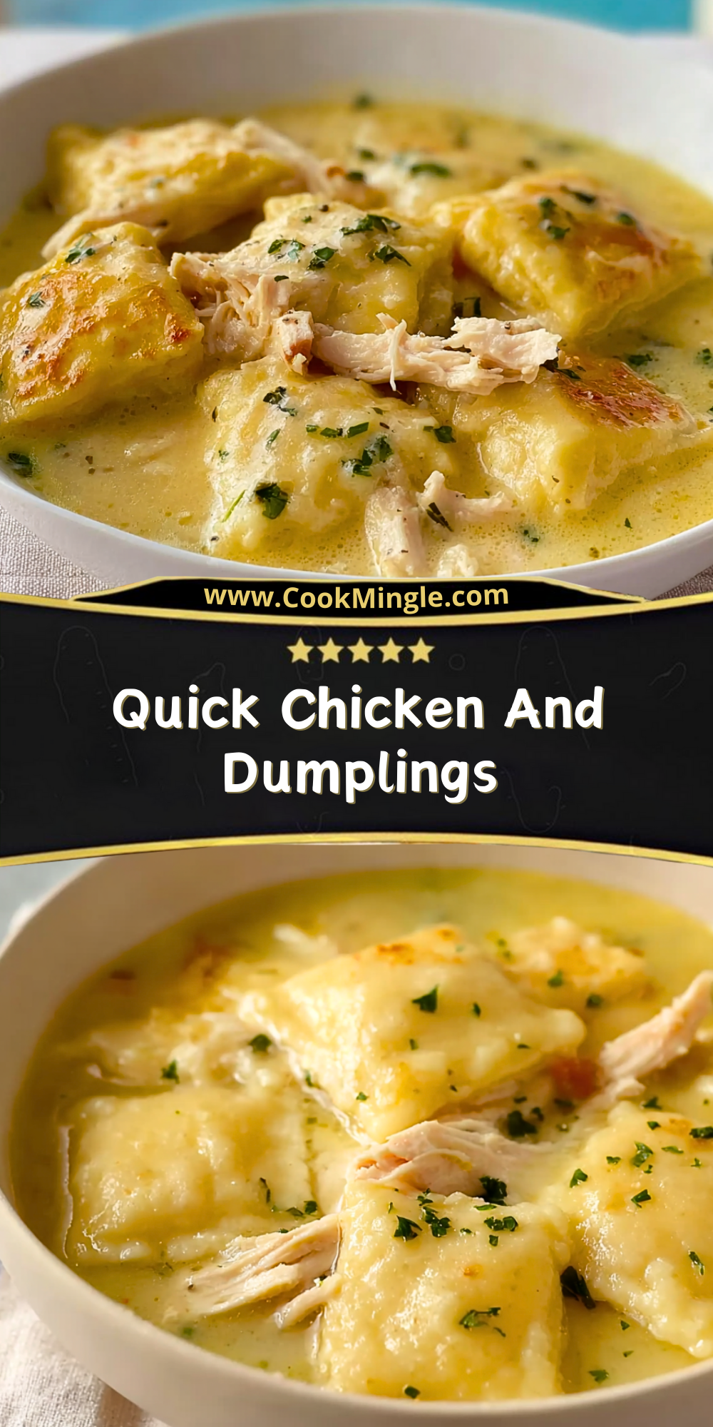 Quick Chicken And Dumplings brings together comfort, efficiency, and rich homestyle flavor in one satisfying bowl. With tender chicken, fluffy dumplings, and a creamy, savory broth, it’s a dependable recipe that works for busy weeknights and cozy weekends alike. Once you make it, it’s likely to become a regular favorite in your kitchen.