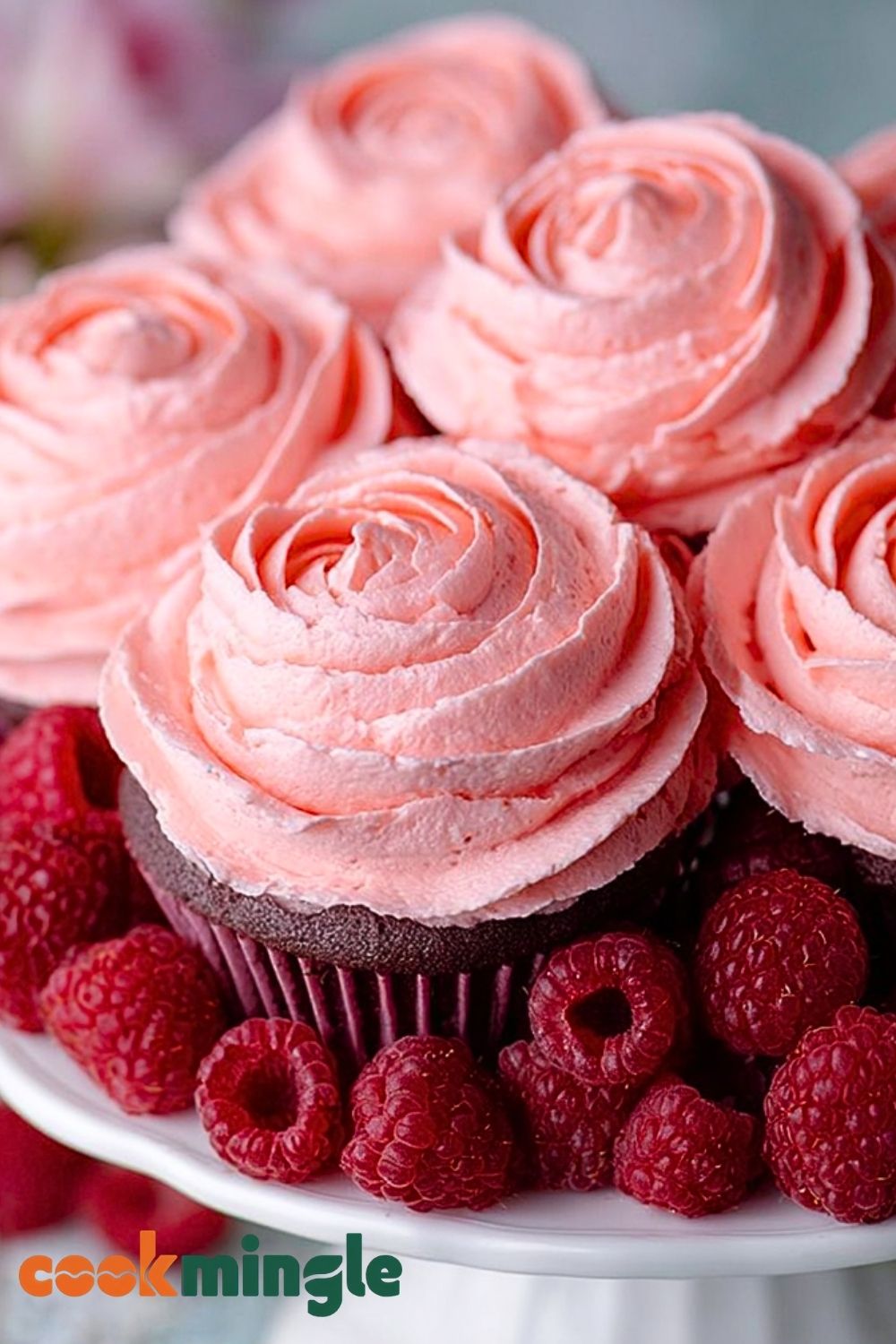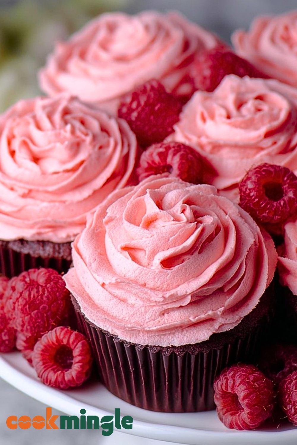 The rich cocoa base pairs beautifully with the fruity sweetness of the raspberry frosting.