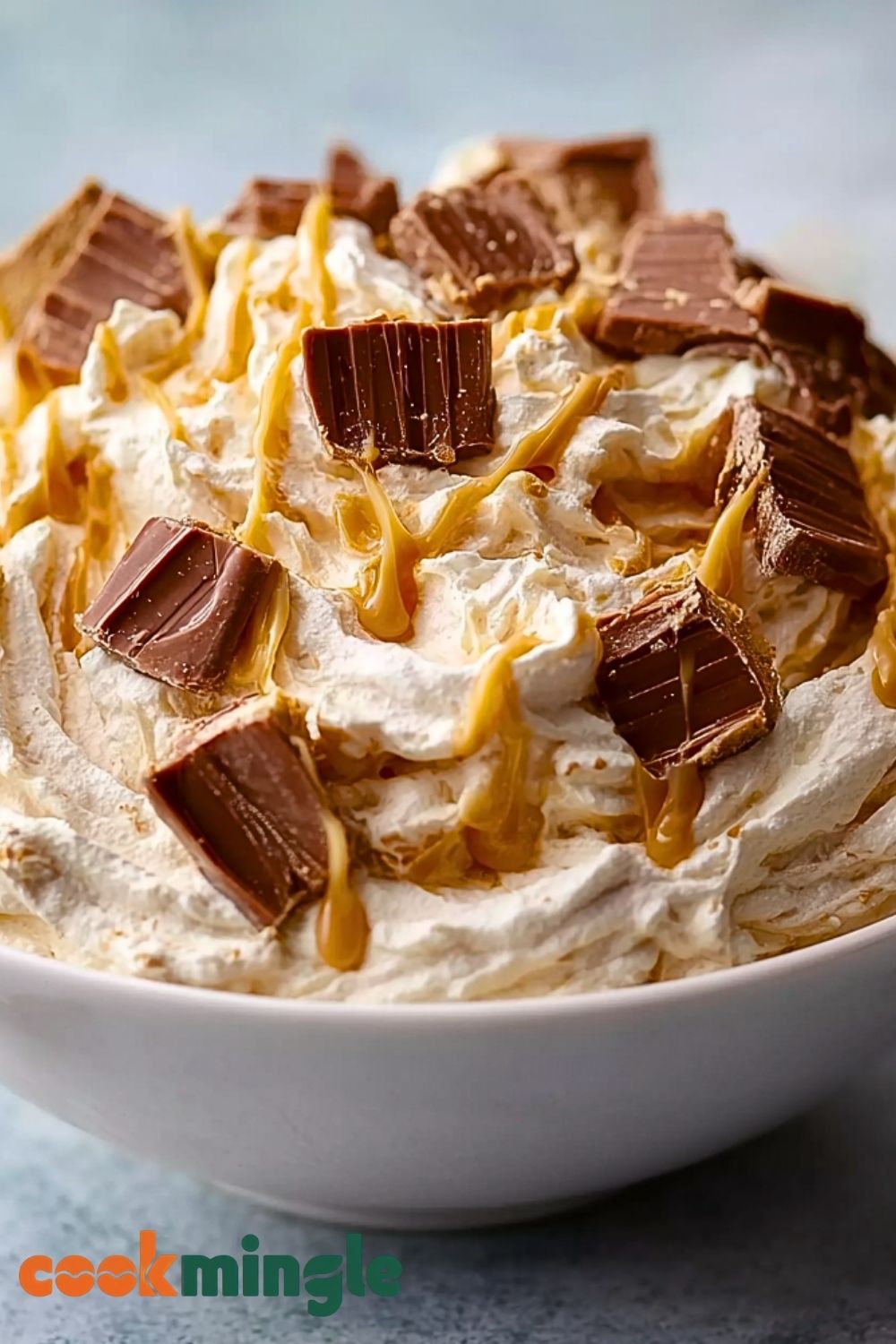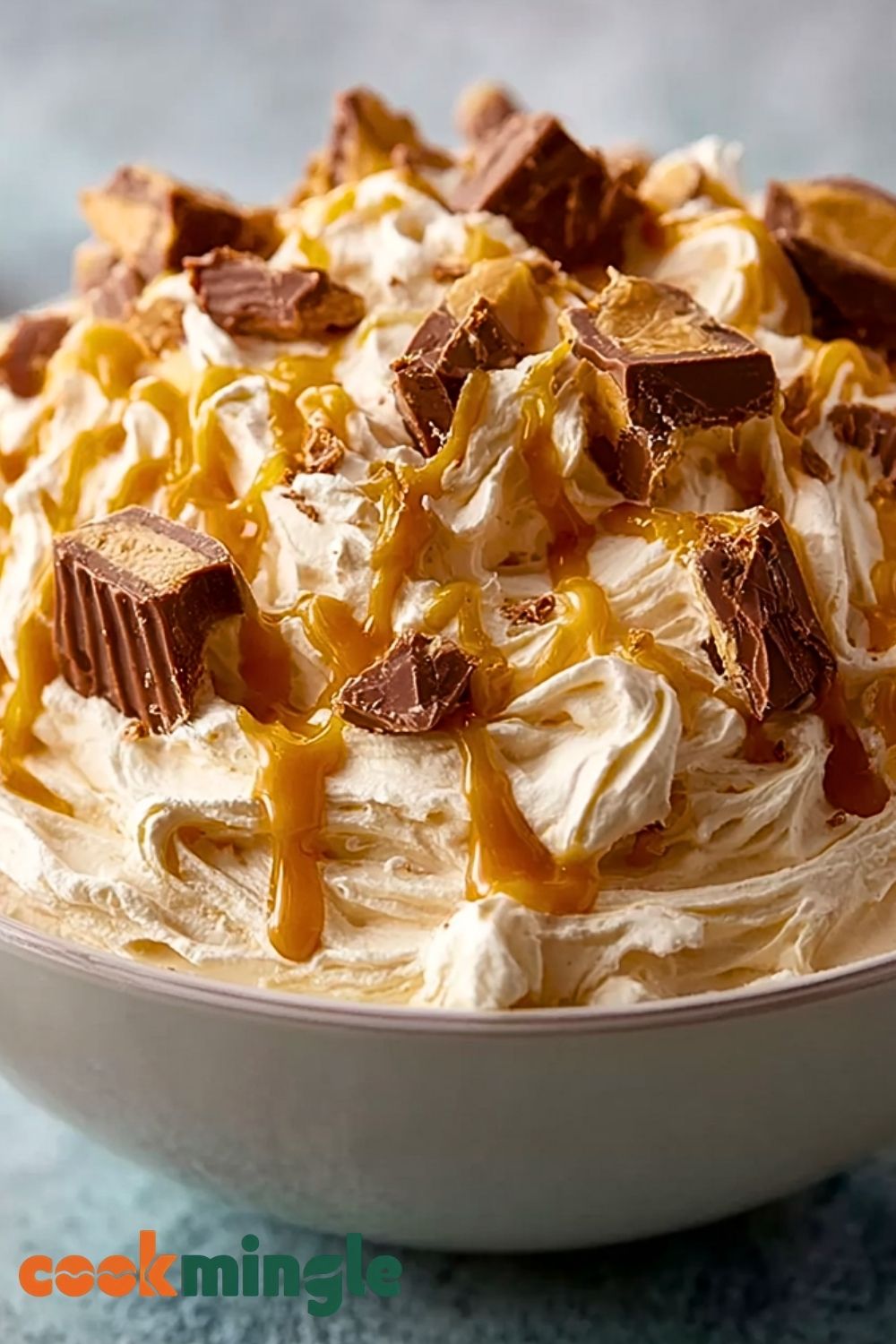 Spoon the mixture into your serving bowl. Sprinkle the remaining Reese’s chunks on top and drizzle with caramel sauce if using. Cover and chill for at least 1 hour before serving for the best texture.