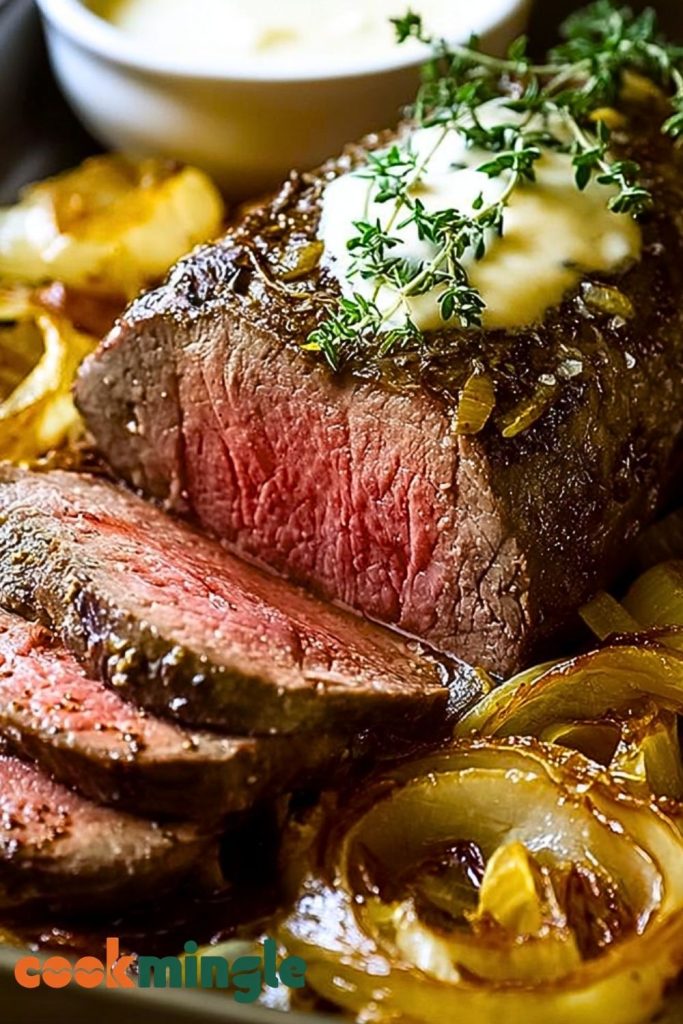 Turn any dinner into a celebration with this Roasted Beef Tenderloin with French Onions and Horseradish Sauce. With buttery, melt-in-your-mouth beef paired with golden caramelized onions and a creamy horseradish kick, this recipe delivers gourmet flavor with minimal effort. Perfect for holidays, special occasions, or a luxurious weekend dinner, this dish is both an easy dinner solution and a restaurant-worthy centerpiece. Whether you’re looking for dinner ideas, entertaining recipes, or just want to try something elegant, this recipe checks all the boxes — tender beef, bold sauce, and rich savory onions.