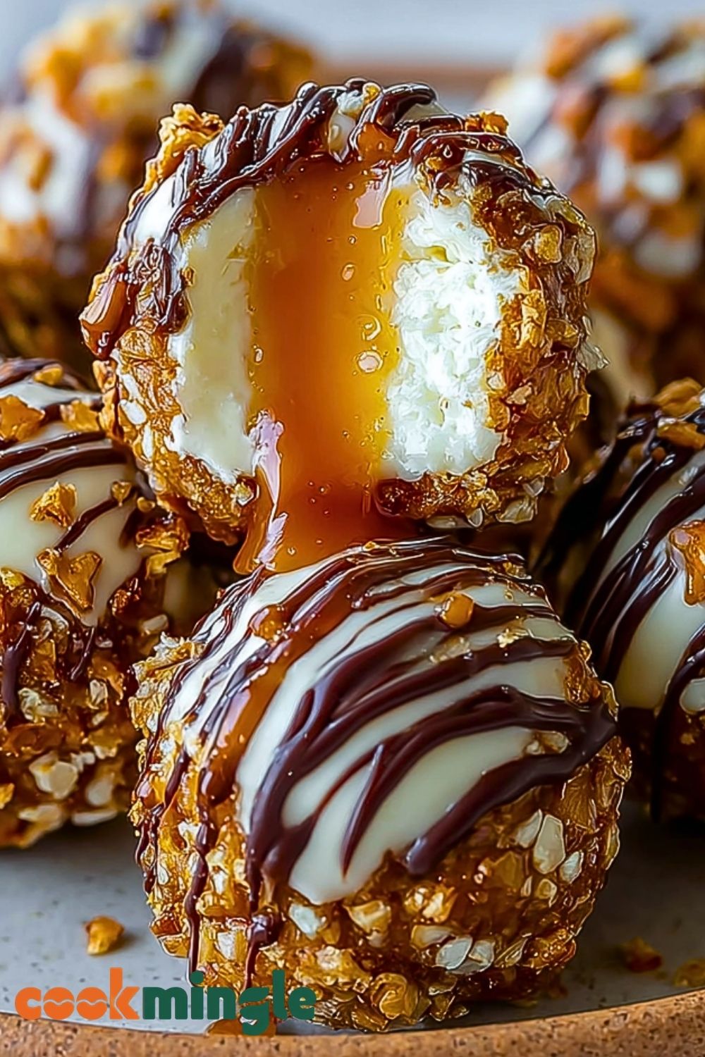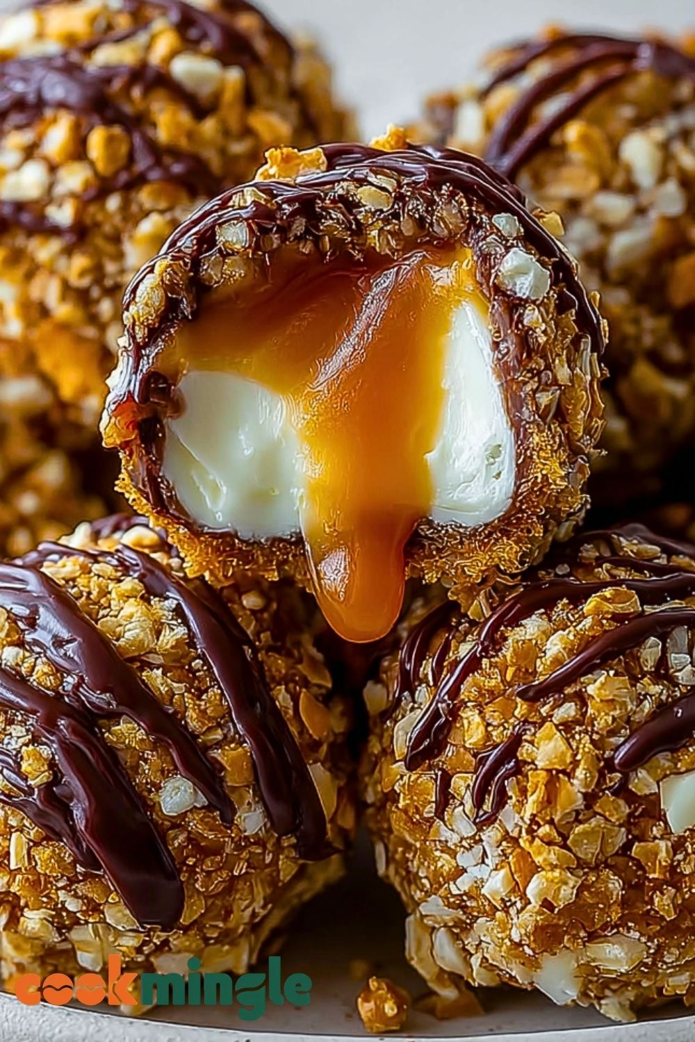 Indulge in these irresistible salted caramel pretzel cheesecake balls—a perfect blend of creamy cheesecake, gooey caramel center, and crunchy pretzel coating. This easy recipe is ideal for a quick dessert, party treat, or sweet snack. With rich chocolate drizzle and a balance of sweet and salty flavors, these bite-sized delights are among the best dessert ideas for any occasion.