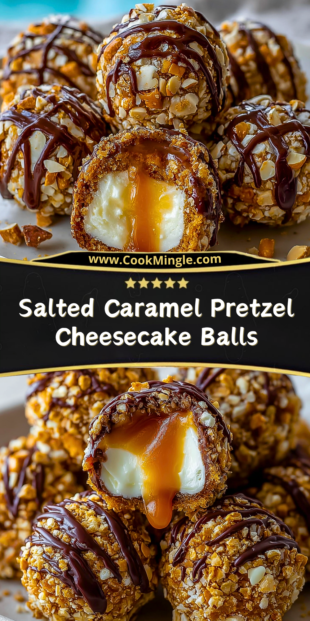 Bite into one of these salted caramel pretzel cheesecake balls and you’re instantly met with a contrast that feels almost indulgent beyond reason—creamy, tangy cheesecake wrapped in a crunchy, salty-sweet pretzel coating, all finished with ribbons of caramel and chocolate. The moment you break one open, that luscious caramel center slowly oozes out, making each bite rich, textured, and completely satisfying.