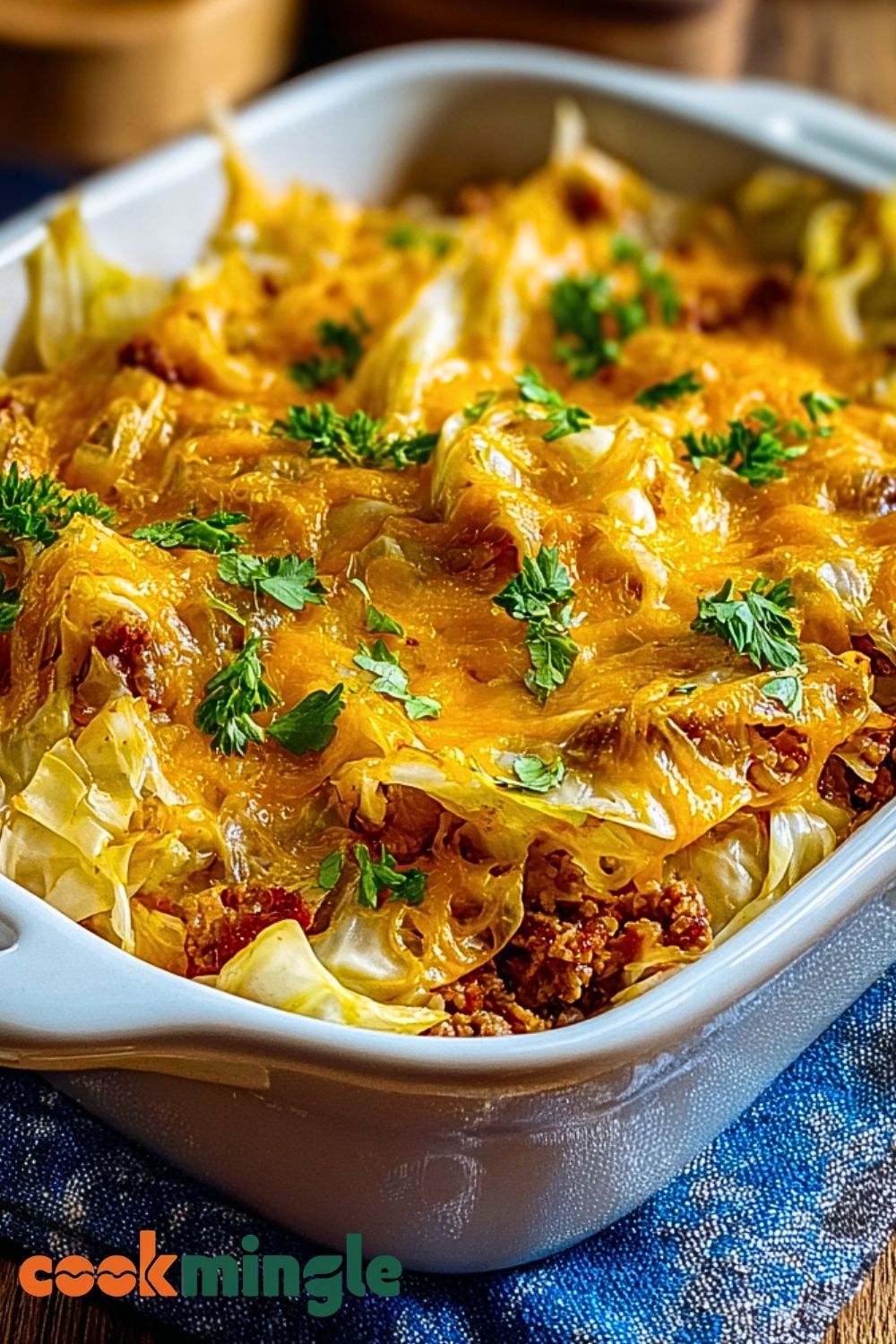 Start by preheating your oven to ensure even baking. When chopping the cabbage, aim for medium-sized shreds – not too fine, not too chunky. This helps it cook through without becoming mushy. Be sure to drain any excess fat after browning the ground beef to keep the casserole from becoming greasy. Layering is key: spread the cabbage, meat mixture, sauce, and cheese in even layers for balanced flavor in every bite. Cover with foil for the first part of baking to keep it moist, then uncover to let the cheese get golden and bubbly. Let it rest for 10 minutes before serving so the layers can set.