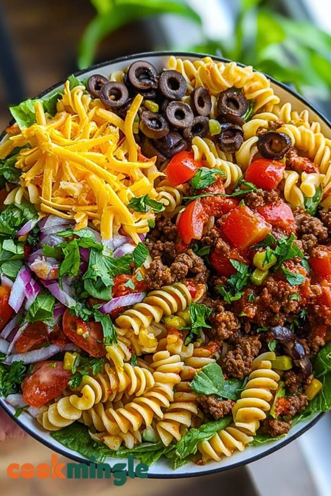 Looking for a quick, flavorful dinner that everyone will love? This Seasoned Ground Beef Taco Pasta Salad Bowl blends all your favorite taco ingredients with the cool, hearty twist of a pasta salad. Perfect for easy dinners, potluck food ideas, or make-ahead lunch recipes, this bowl is bold, fresh, and filling. With taco-spiced beef, tender pasta, crisp veggies, and a creamy or tangy dressing, it’s the kind of easy recipe that checks all the boxes—great texture, huge flavor, and tons of flexibility. Whether you serve it warm or chilled, it’s guaranteed to become one of your top dinner ideas or meal prep favorites.