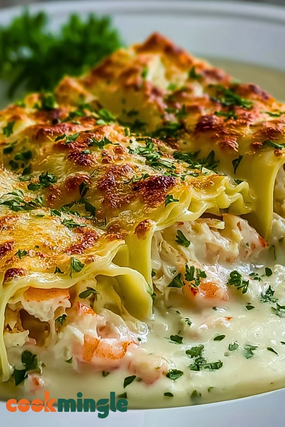 Make sure to use room-temperature cream cheese for easy mixing with the seafood. Pre-cook the lasagna noodles just until al dente—they’ll soften further during baking. Be gentle when rolling the pasta to keep the filling from squeezing out. Also, pat the shrimp and crab dry before adding them to the filling to avoid a watery mixture. If using frozen seafood, thaw it completely and drain excess liquid. Layer some Alfredo sauce at the bottom of the baking dish to prevent sticking and keep the roll-ups moist. Finish with a layer of cheese on top for a perfect golden crust.