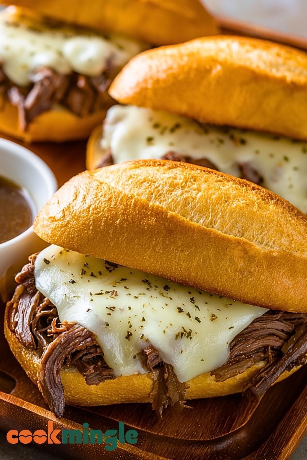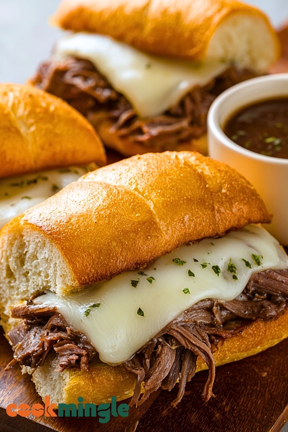 Ladle the flavorful cooking broth (strain if desired) into small bowls for dipping. Serve each sandwich hot with a side of au jus and enjoy every savory, dunkable bite.