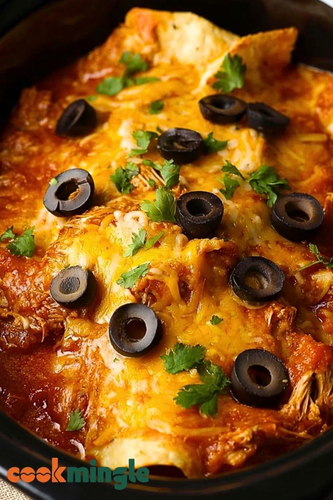 This dish isn’t just another dinner — it’s a blend of rich enchilada sauce, shredded chicken, melty cheese, and tender tortillas all cooked together into a bubbling, hearty casserole. I can toss it all into the slow cooker, let it do its magic, and come back to a dinner that tastes like I’ve been cooking all day. Whether it’s for a weeknight meal or a casual weekend gathering, this one never disappoints.