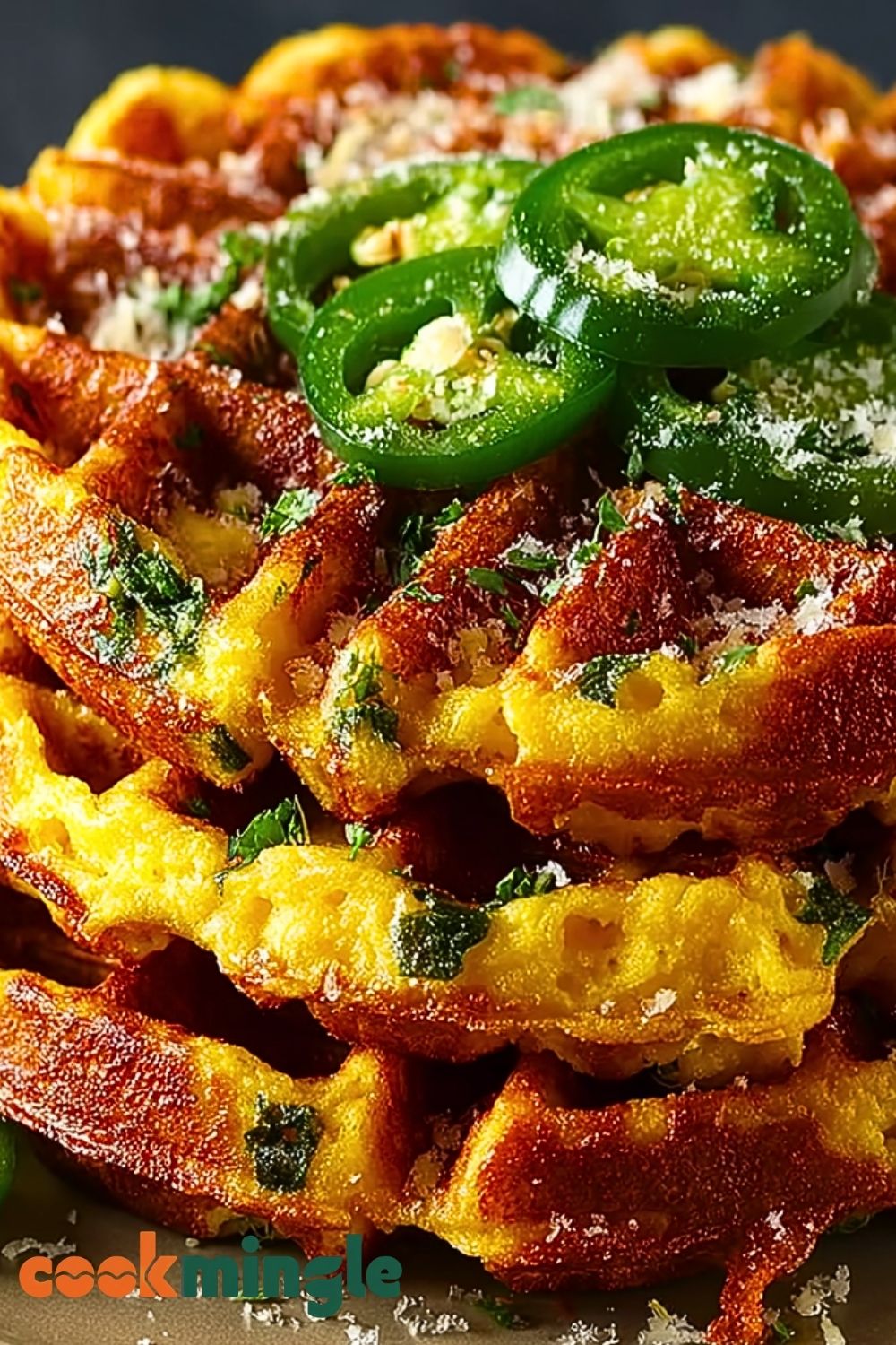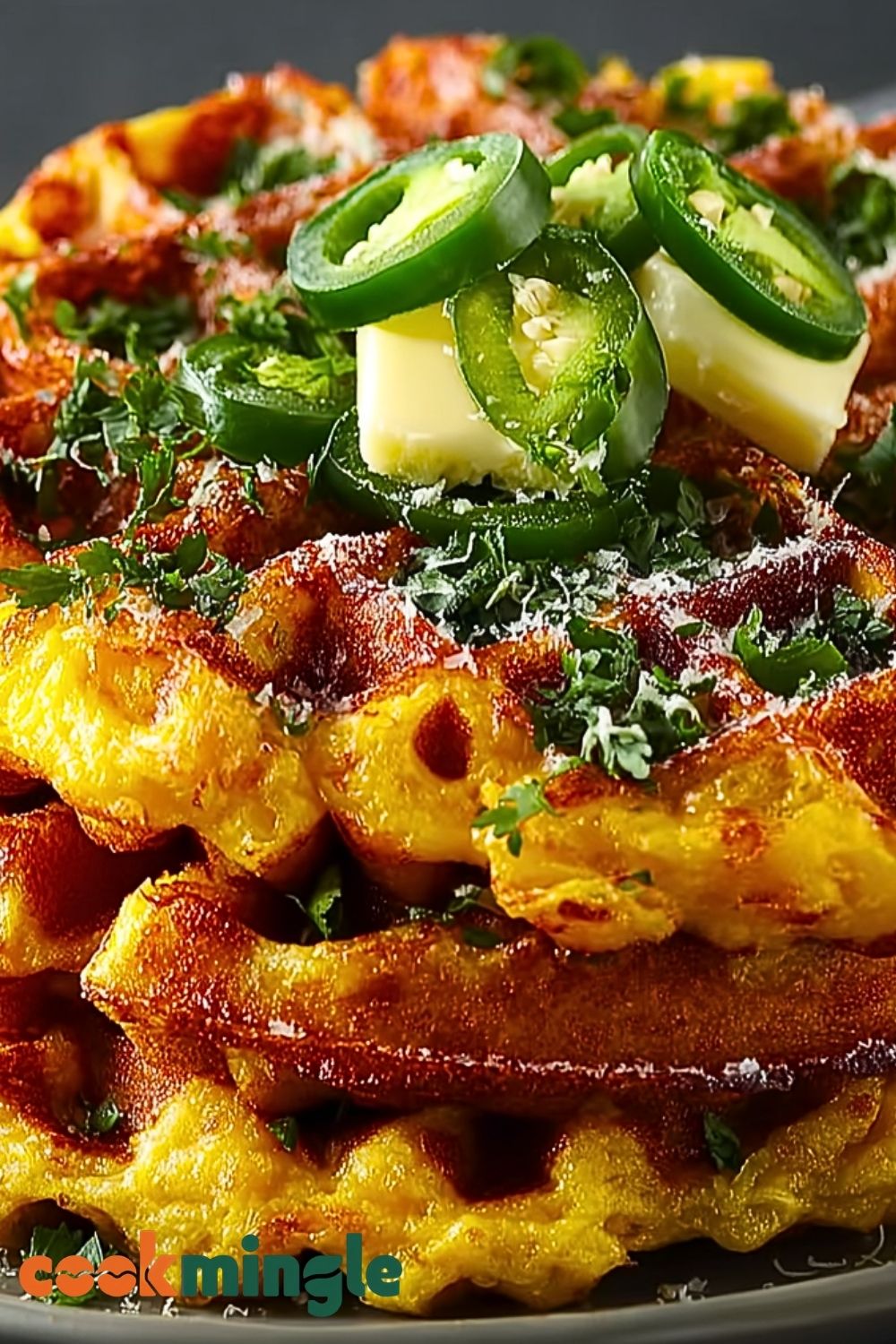 Spicy Cheddar Jalapeño Cornbread Waffles
