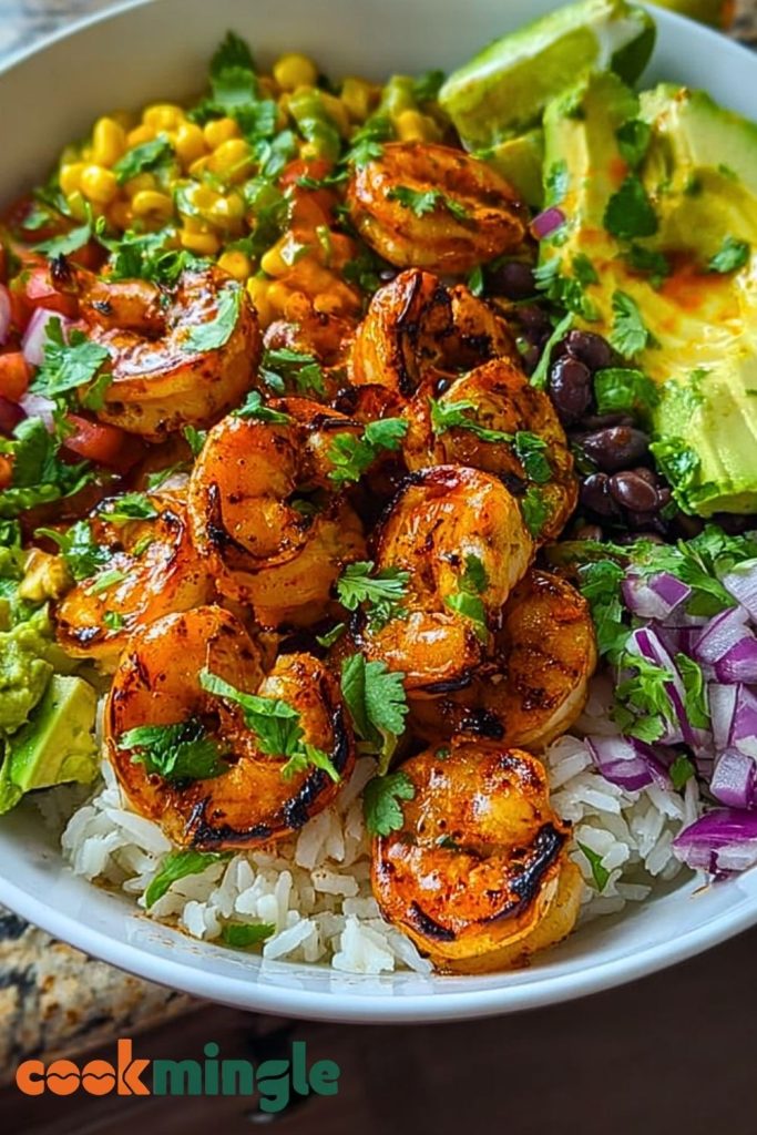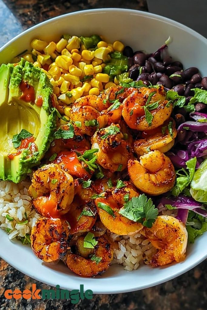 Keywords: spicy shrimp, burrito bowl, easy dinner, meal prep, healthy lunch, high-protein bowl, gluten-free