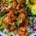 A burst of colors, flavors, and textures – the Spicy Shrimp Burrito Bowl is everything you crave in one bowl. Juicy grilled shrimp coated in a smoky, spicy glaze are the stars of the show, balanced by creamy avocado, crisp red cabbage, sweet corn, and hearty black beans. All of it sits atop a bed of fluffy white rice, with a generous drizzle of hot sauce for that final fiery kick. It’s the kind of meal that looks like it took hours, but comes together surprisingly quickly.