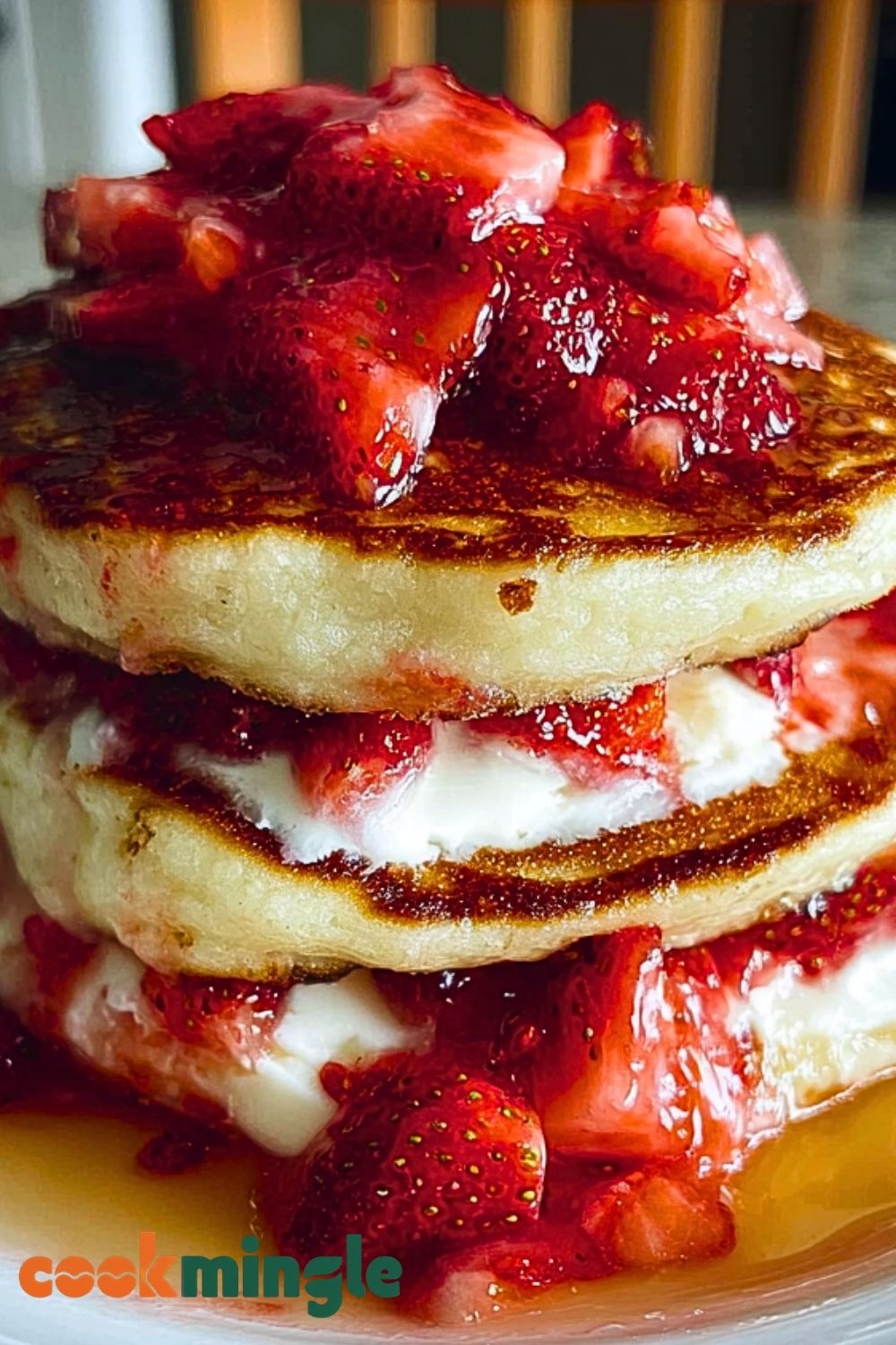 This recipe is all about balance—light, fluffy pancakes paired with a rich, creamy cheesecake filling and fresh, juicy strawberries. You can easily adjust the sweetness depending on your preference by modifying the sugar in both the filling and the topping. If you prefer a tangier flavor, add a bit more lemon juice to the strawberries or a touch of sour cream to the cheesecake mixture. For an extra indulgent version, consider folding mini white chocolate chips into the pancake batter or adding a drizzle of strawberry sauce between layers.