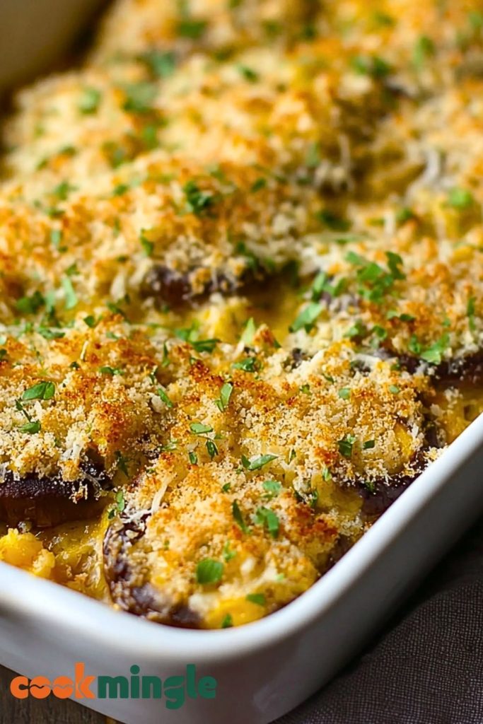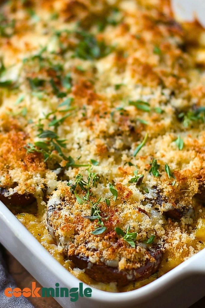 Whether you’re making this for a cozy weeknight dinner, a weekend potluck, or a holiday feast, this casserole is a versatile star. With juicy mushrooms, golden breadcrumbs, melted cheese, and a perfectly seasoned filling, every forkful is layered with deliciousness. It’s also easy to customize—make it vegetarian, spicy, or add protein—while keeping its soul-satisfying essence.