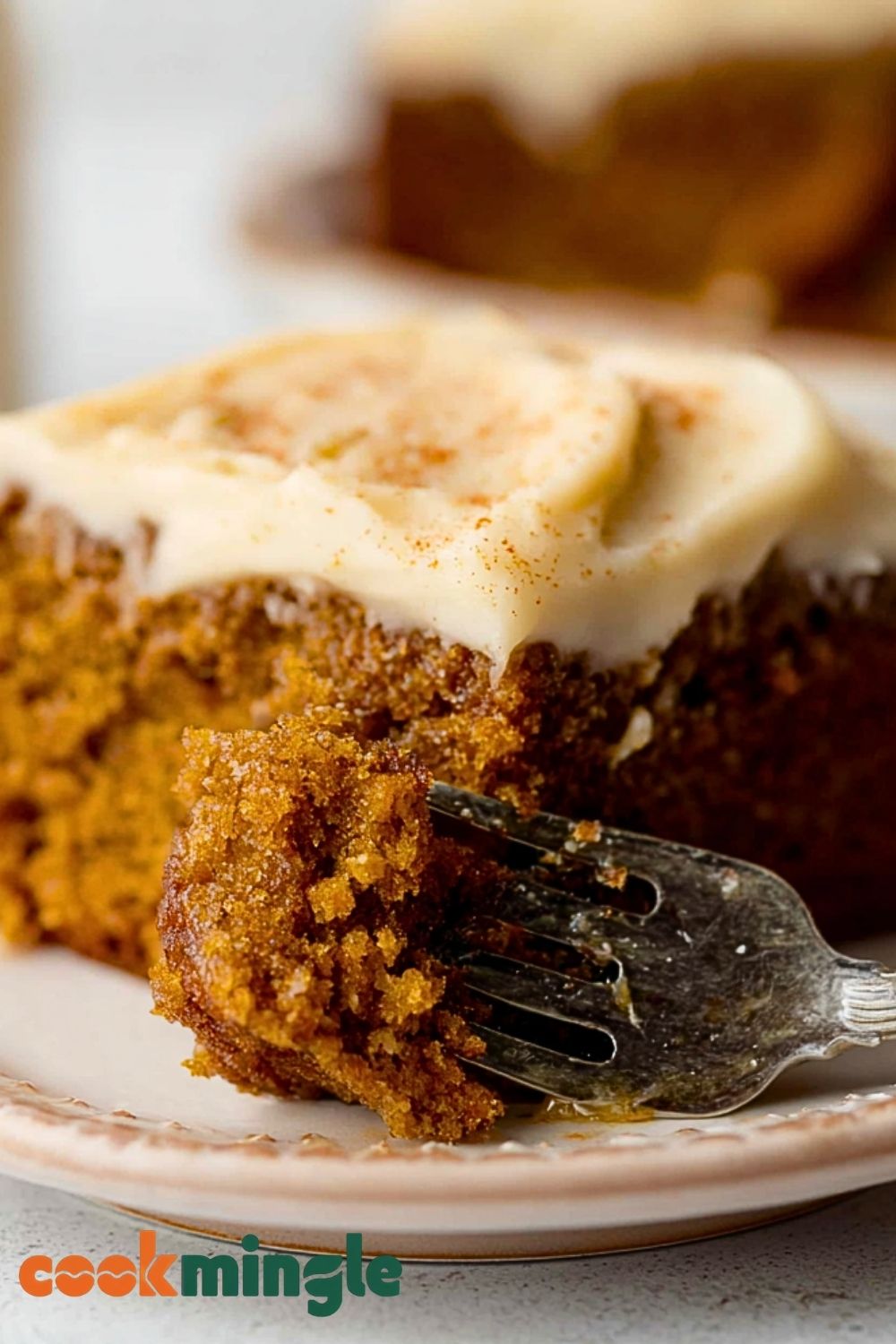 Once the cake is completely cool, spread the frosting evenly on top. Sprinkle with a bit of cinnamon or nutmeg for a finishing touch. Slice and enjoy!