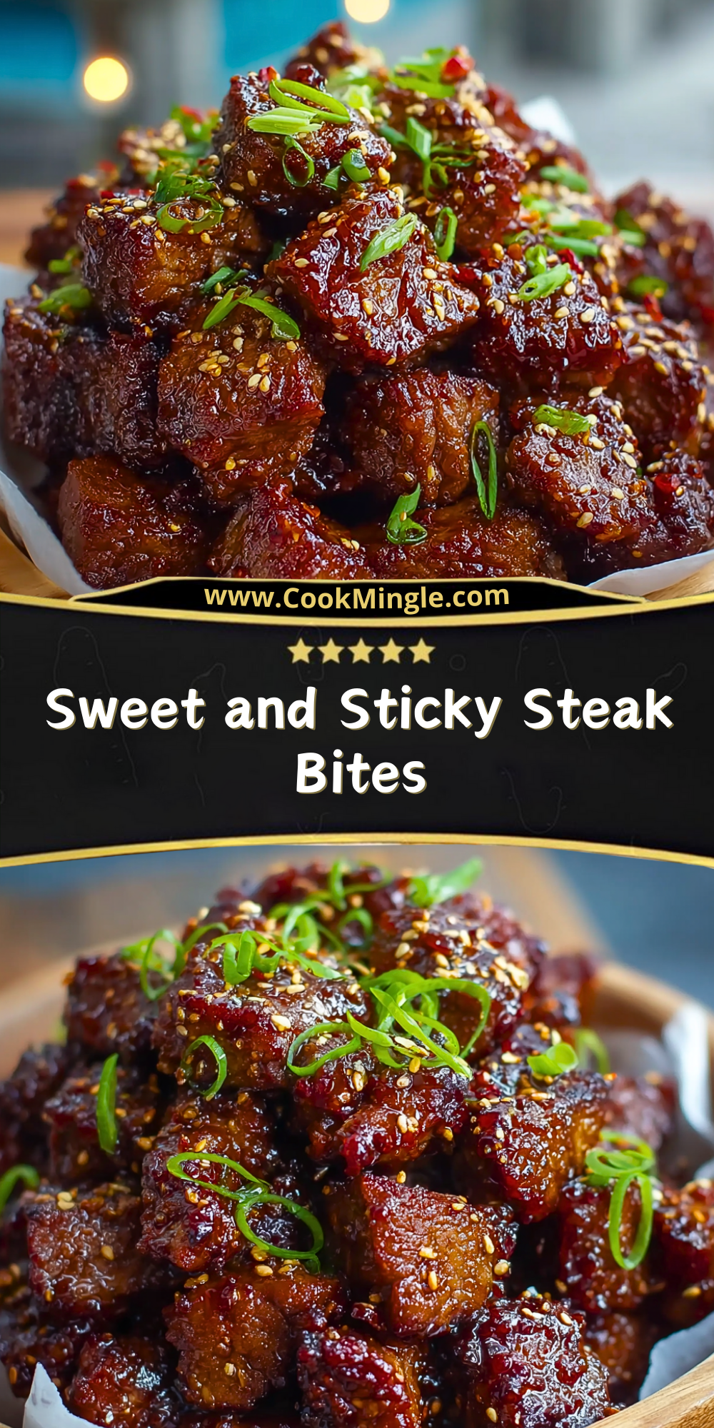 Juicy, tender, and packed with flavor — these Sweet and Sticky Steak Bites are the ultimate meaty indulgence. Glazed in a mouthwatering sauce made with soy, honey, garlic, and a hint of heat, each bite delivers a perfect balance of savory and sweet. They’re crispy on the outside, juicy on the inside, and topped with sesame seeds and green onions for that irresistible final touch.