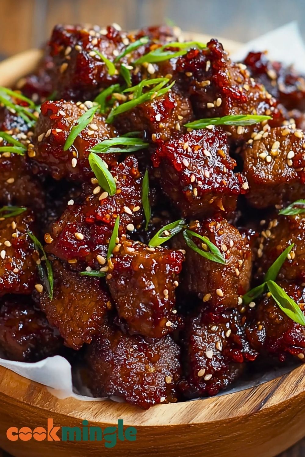 Once the sauce has thickened and the steak is coated and glossy, remove from heat. Garnish immediately with toasted sesame seeds and sliced green onions. Serve hot, over steamed rice, noodles, or enjoy them on their own as a crowd-pleasing appetizer.