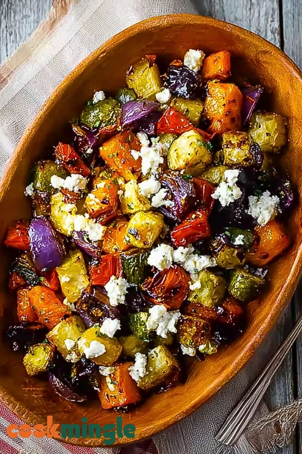 Roast the vegetables in a preheated oven at 425°F (220°C) for 30-40 minutes. Flip them halfway through to get even browning. You want crispy edges and tender insides.